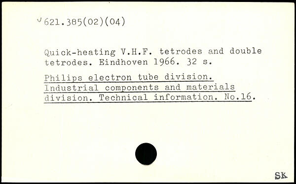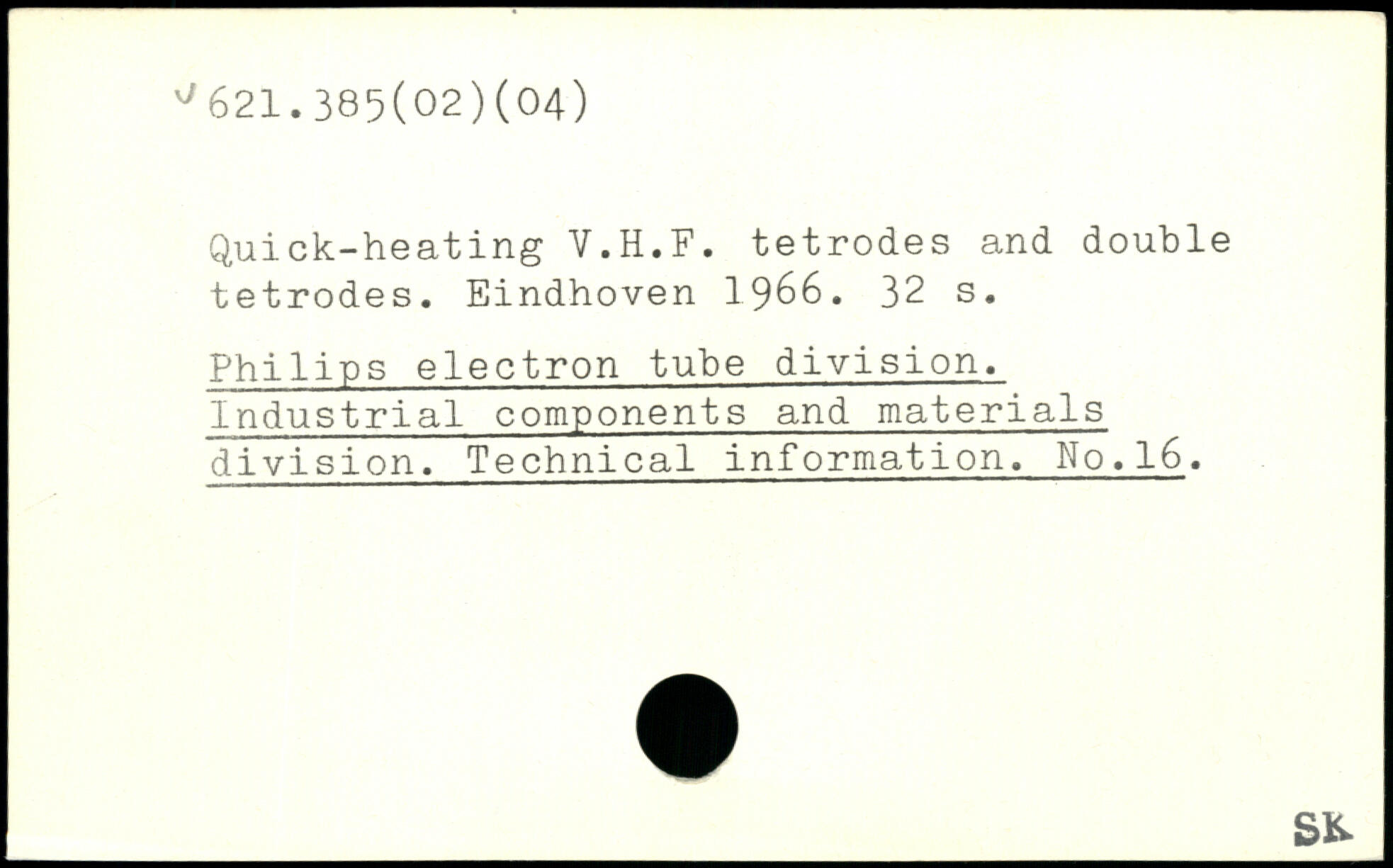 Quick-heating V.H.F. tetrodes and double tetrodes. Eindhoven 1966.