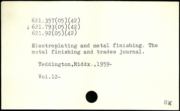 Electroplating and metal finishing; The metal finishing and trades journal. Teddington,Middx,,1959“