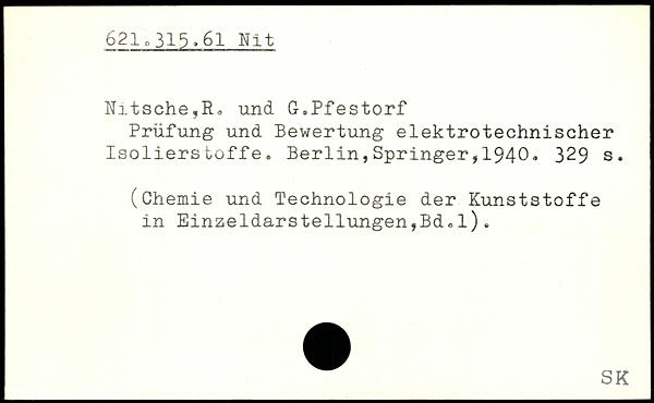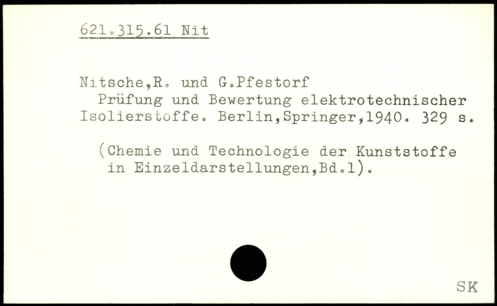 Hitsche,R, und G.Pfestorf Prüfung und Bewertung elektrotechnischer Isolierstoffe.