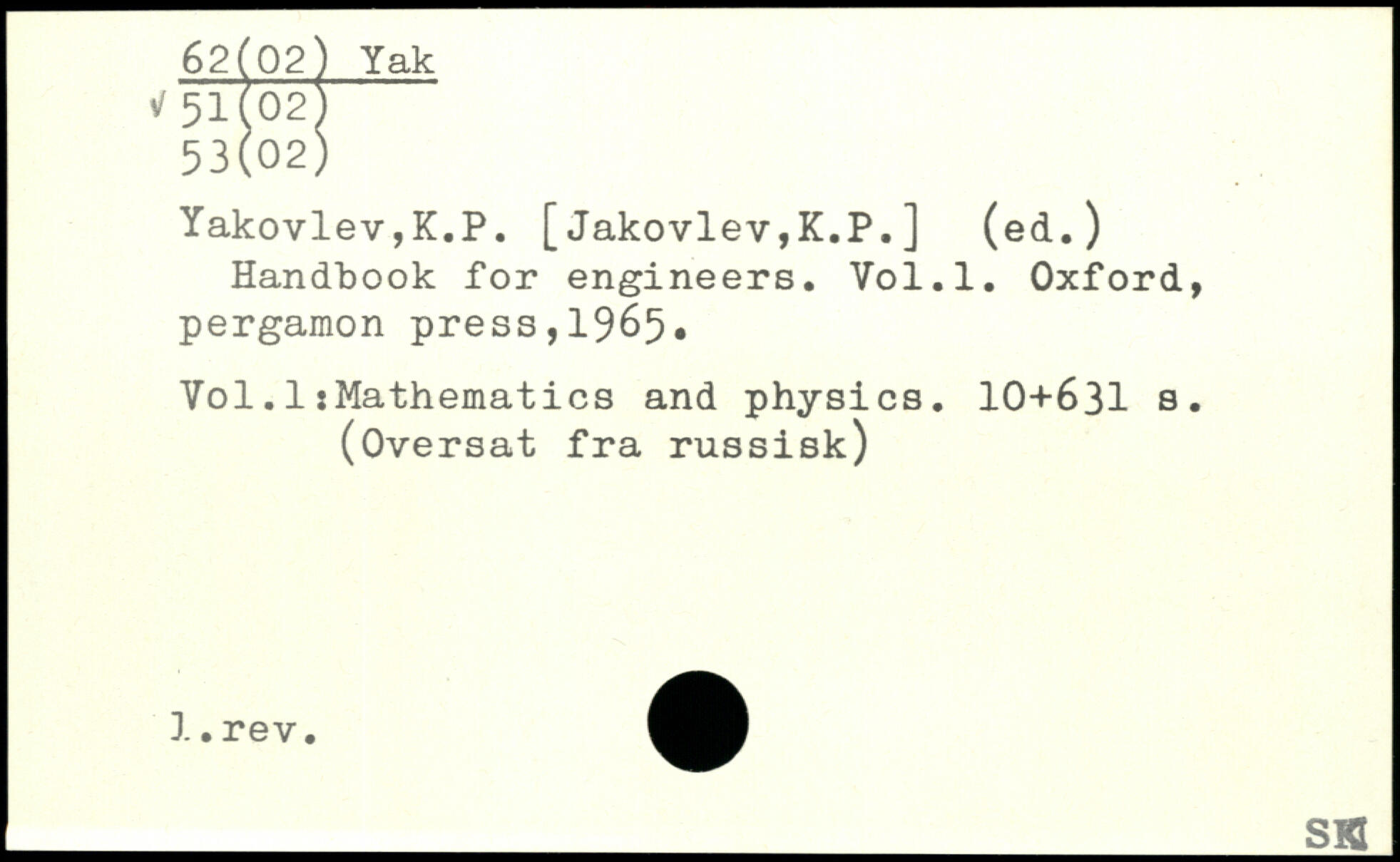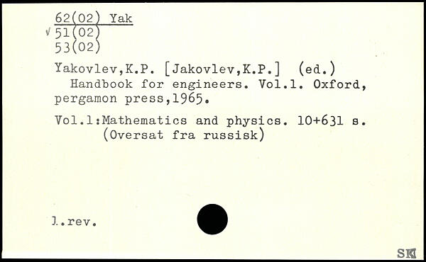 Yakovlev,K.P. [ Jakovlev,K.P.] (ed.) Handbook for engineers.