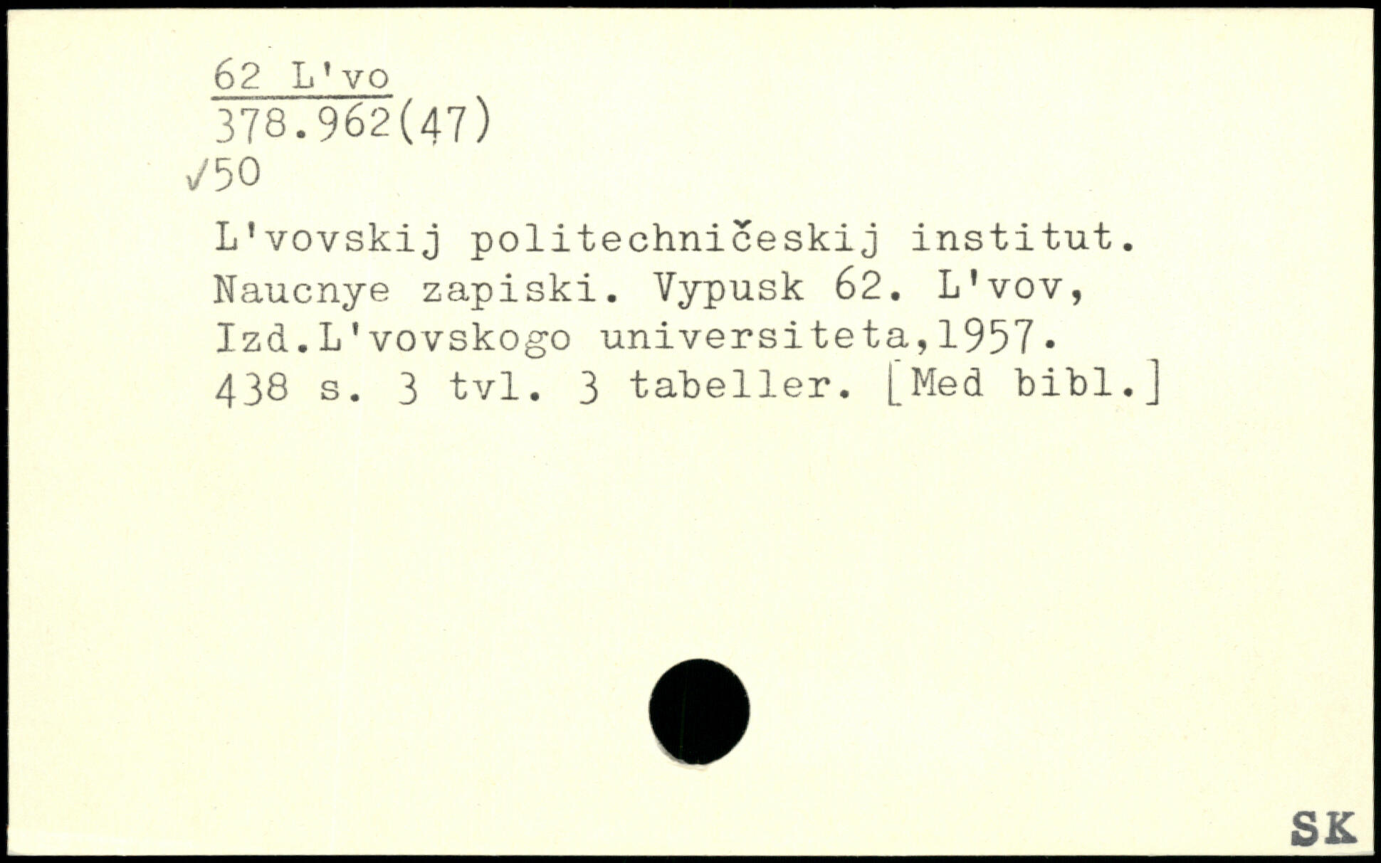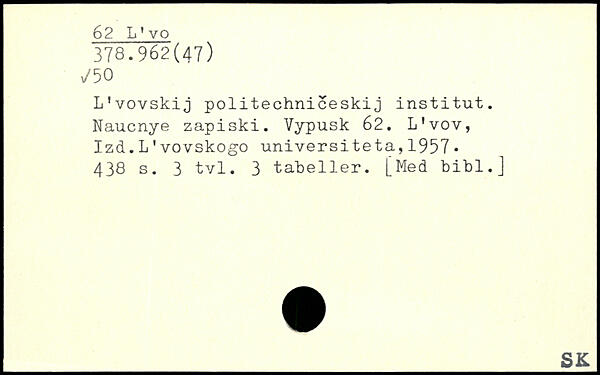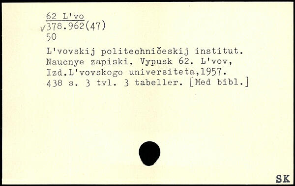 L'vovskij politechniceskij institut. Naucnye zapiski. Vypusk 62. L'vov, Izd.L1vovskogo universitéta,1957