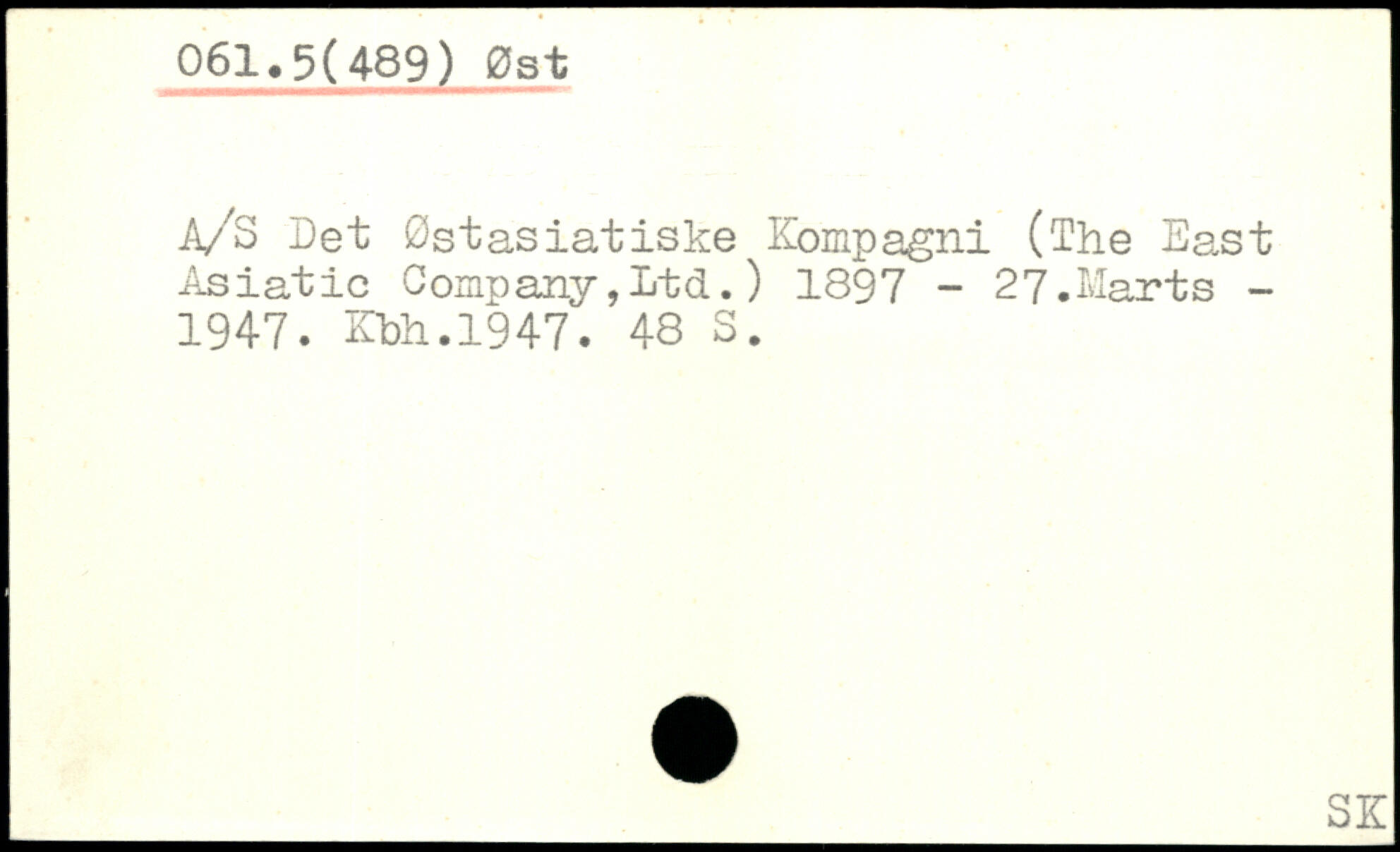 A/S Det Østasiatiske Kompagni (The East Asiatio Company,Iitd.) 1897 - 27.Uarts -1947. Kbh.1947.