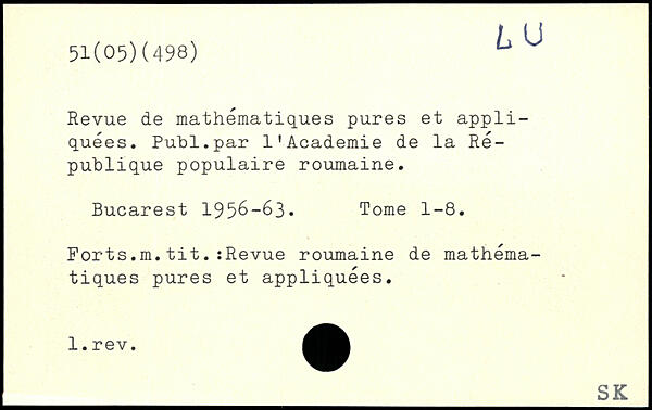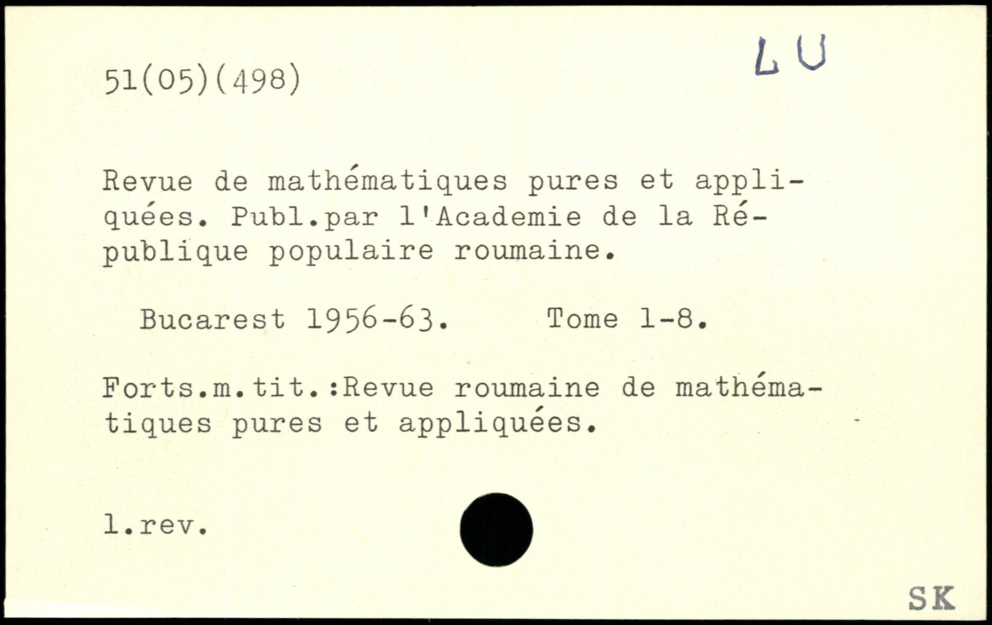 Revue de mathématiques pures et appliquées. Publ.par l'Academie de la République populaire roumaine.