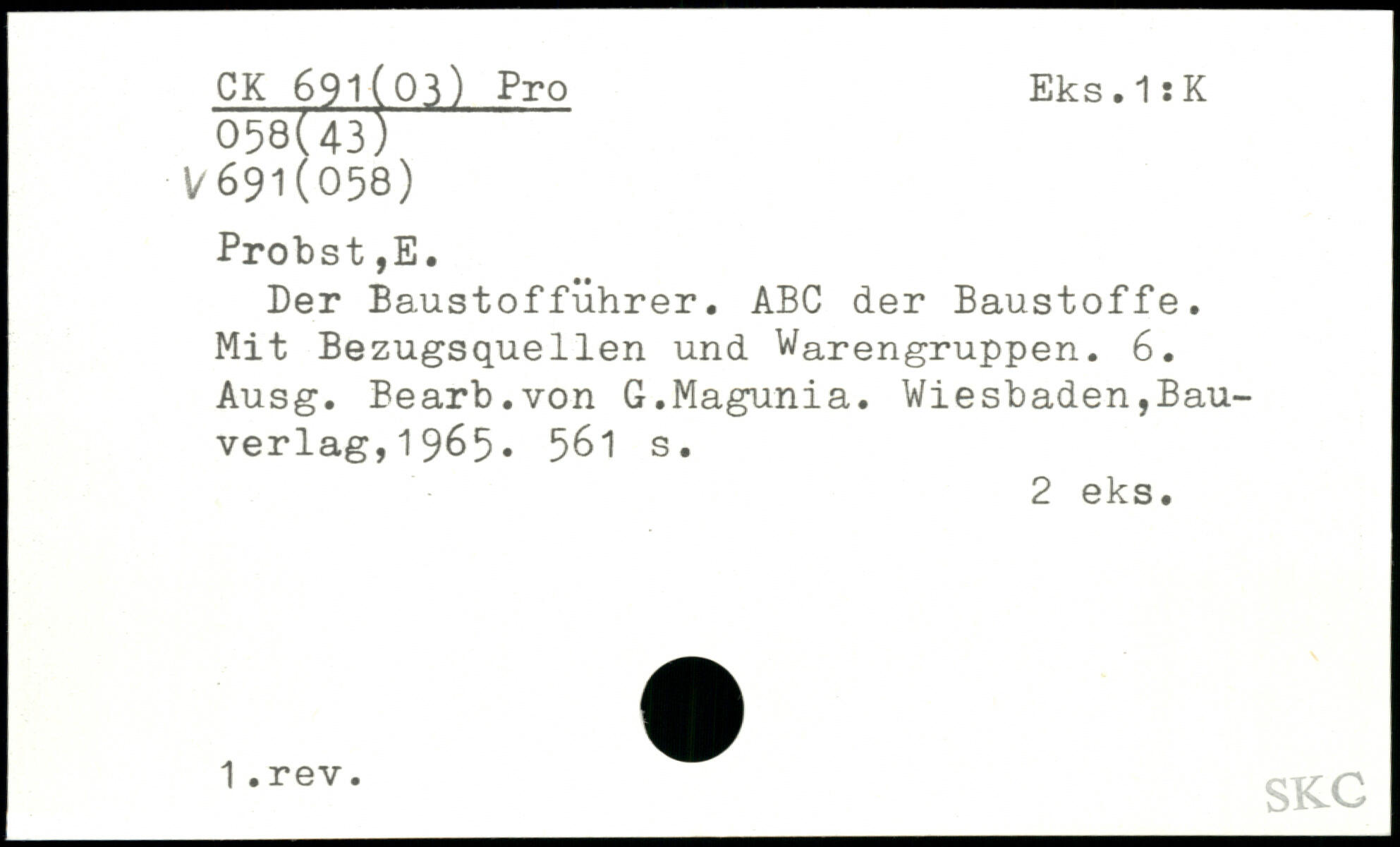 Der Baustofführer. ABC der Baustoffe. Mit Bezugsquellen und Warengruppen. 6. Ausg. Bearb.von G.Magunia.