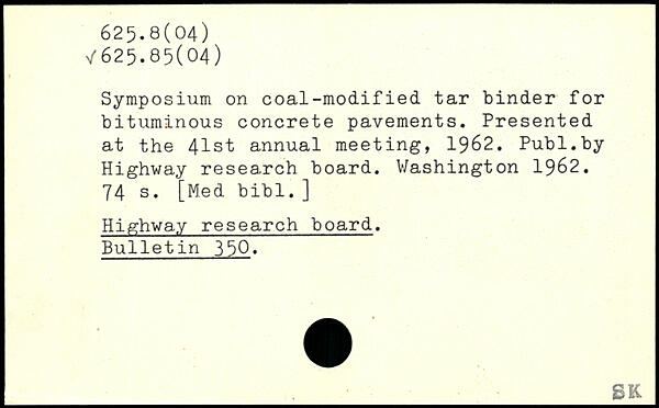 Symposium on coal-modified tar binder for bituminous concrete pavements. Presented at the 41st annual meeting, 1962.