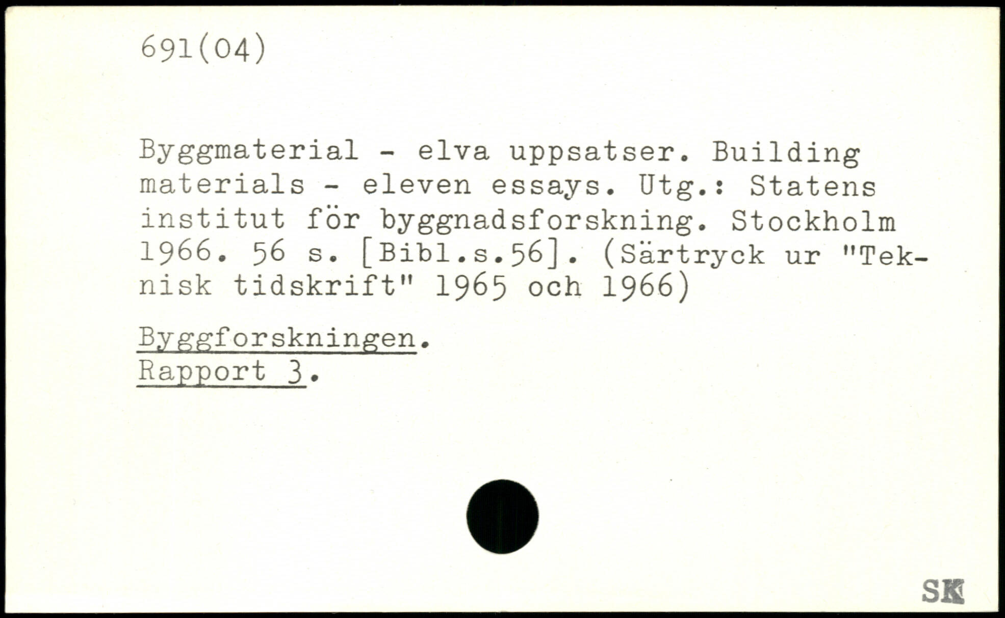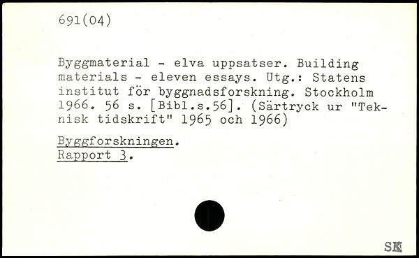 Byggmaterial - elva uppsatser. Building materials - eleven essays. Utg.: Statens institut för byggnadsforskning.