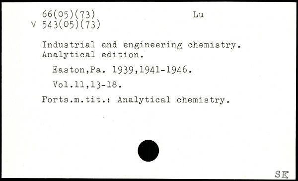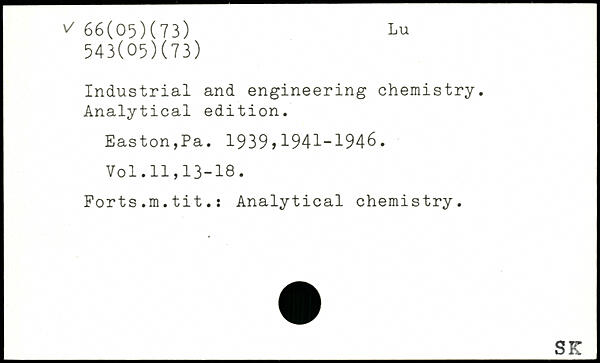 Industrial and engineering chemistry. Analytical edition. Easton,Pa. 1939,1941-1946.
