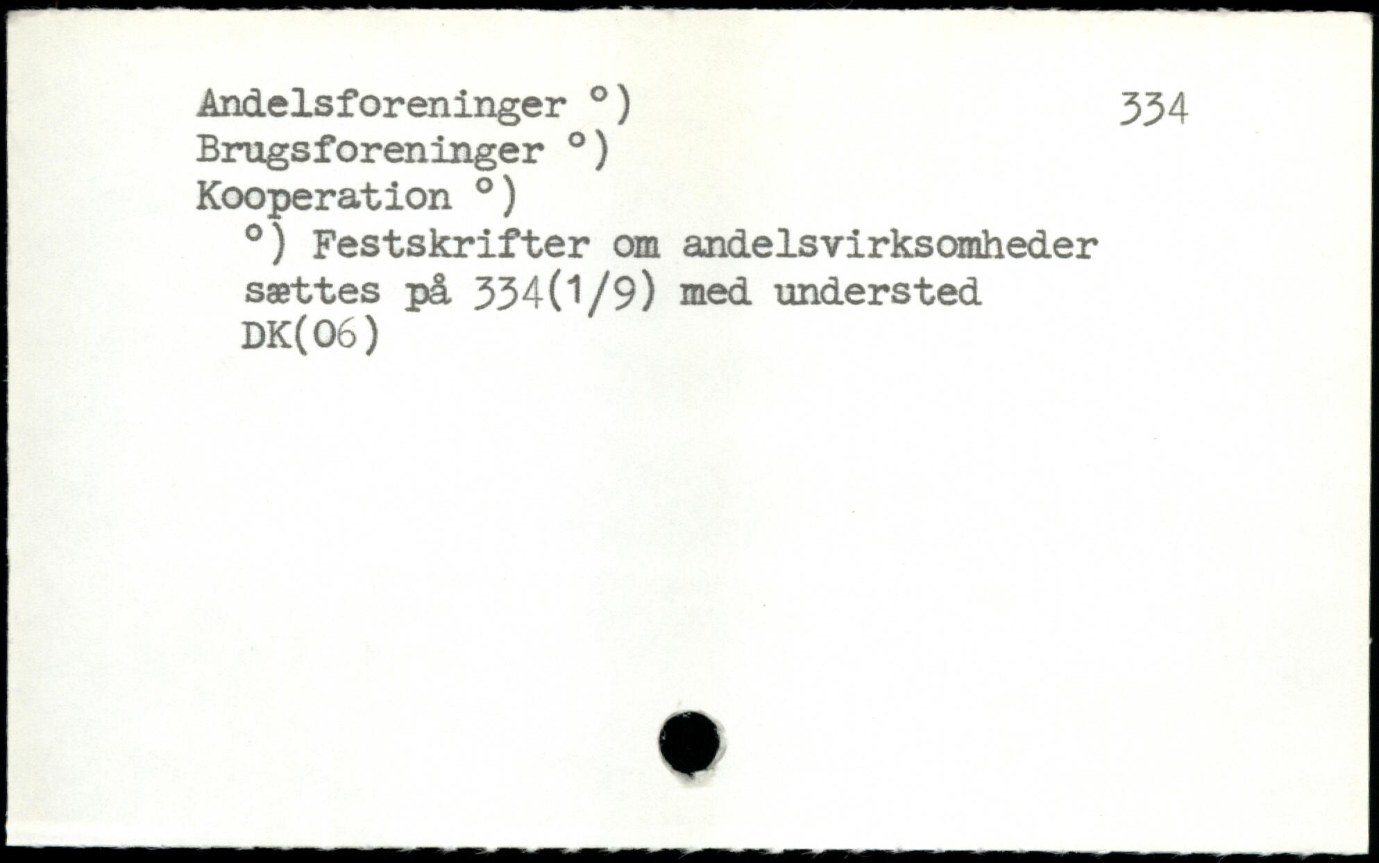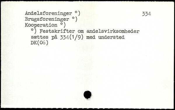 Brugsforeninger .) Kooperation .) .) Festskrifter om andelsvirksomheder sættes på 334(1/9) med. understed DK(06)