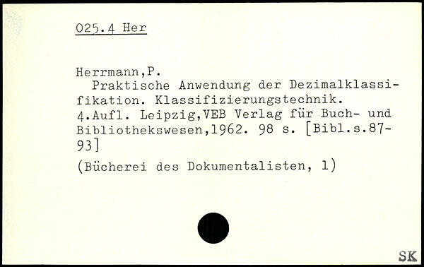 02^.4 Her Herrmann,P. Praktische Anwendung der Dezimalklassifikation. Klassifizierungstechnik.