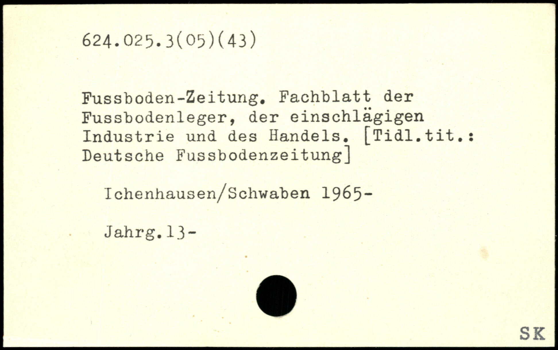 Fussboden-Zeitung. Fachblatt der Fussbodenleger, der einschlägigen Industrie und des Handels. [Tidl.tit.i Deutsche Fussbodenzeitung] Ichenhausen/Schwaben 1965- Jahrg.13-