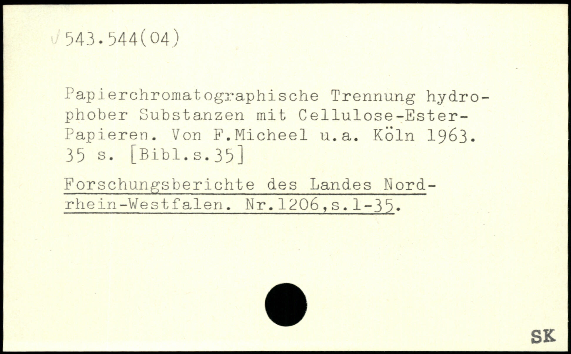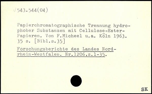Papierchromatographische Trennung hydrophober Substanzen mit Cellulose-Ester-Papieren. Von F.Micheel u.a.