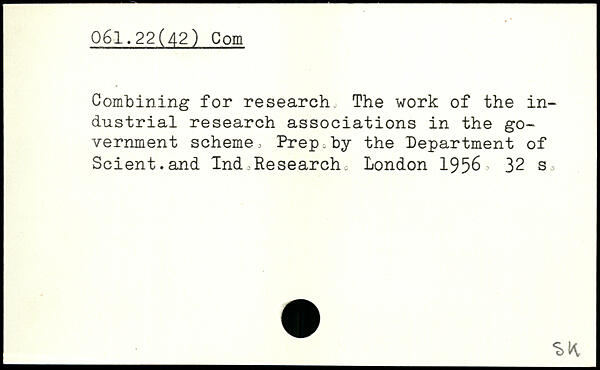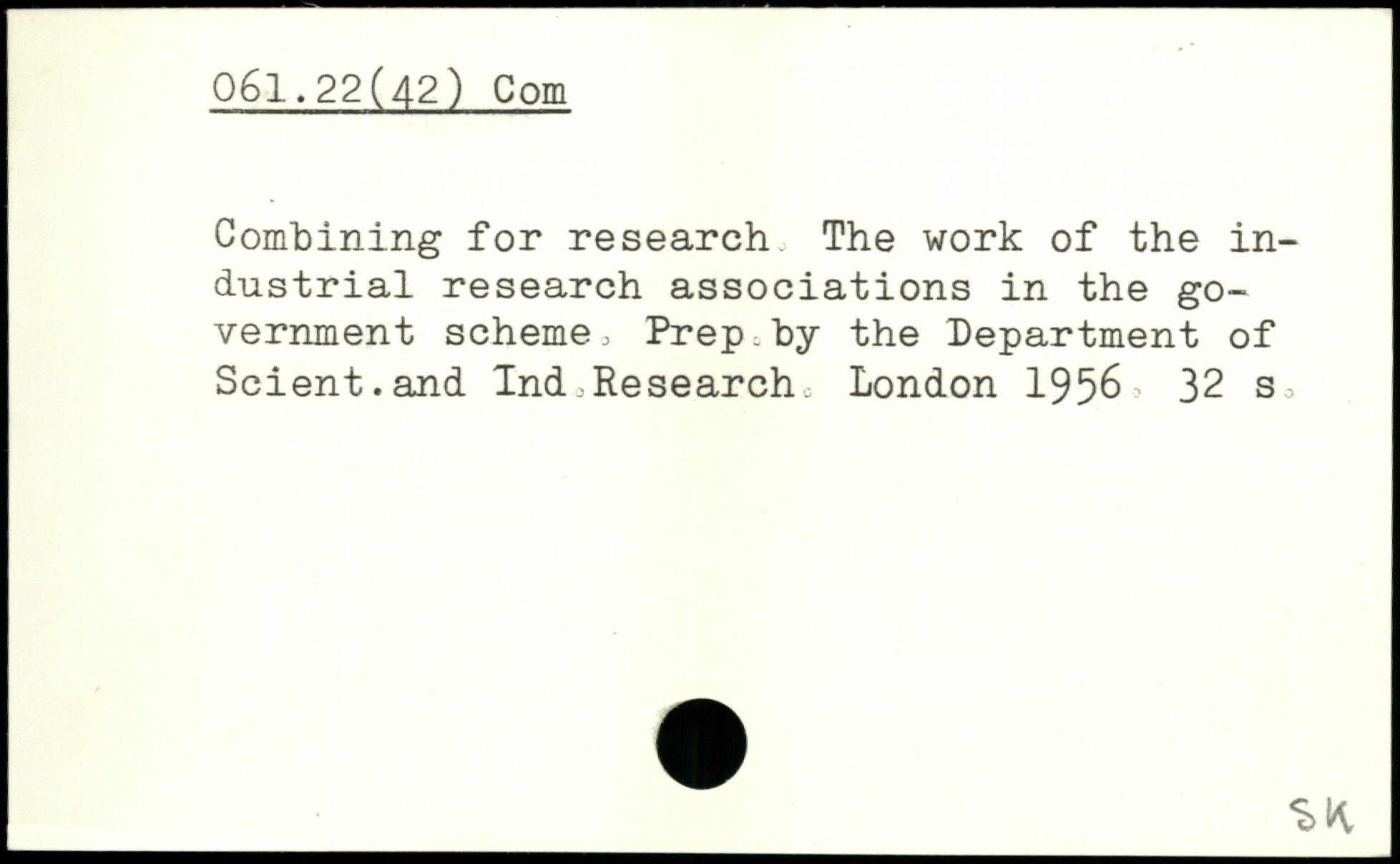 Combining for research. The work of the industrial research associations in the government scheme. Prep,by the Department of Scient.and Tnd-Research
