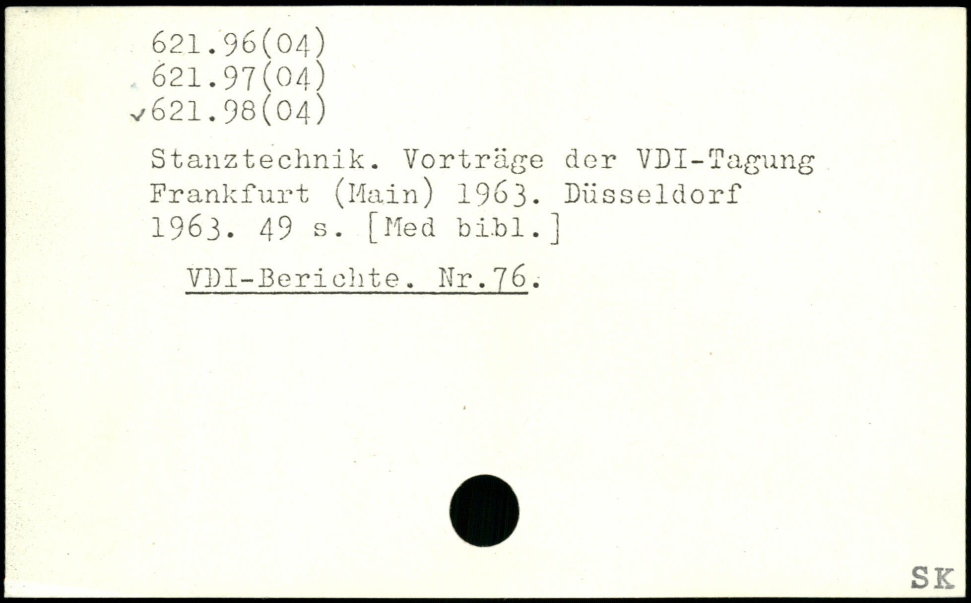 Stanztechnik. Vorträge der VDI-Tagung Frankfurt (Main) 1963. Düsseldorf 1963.