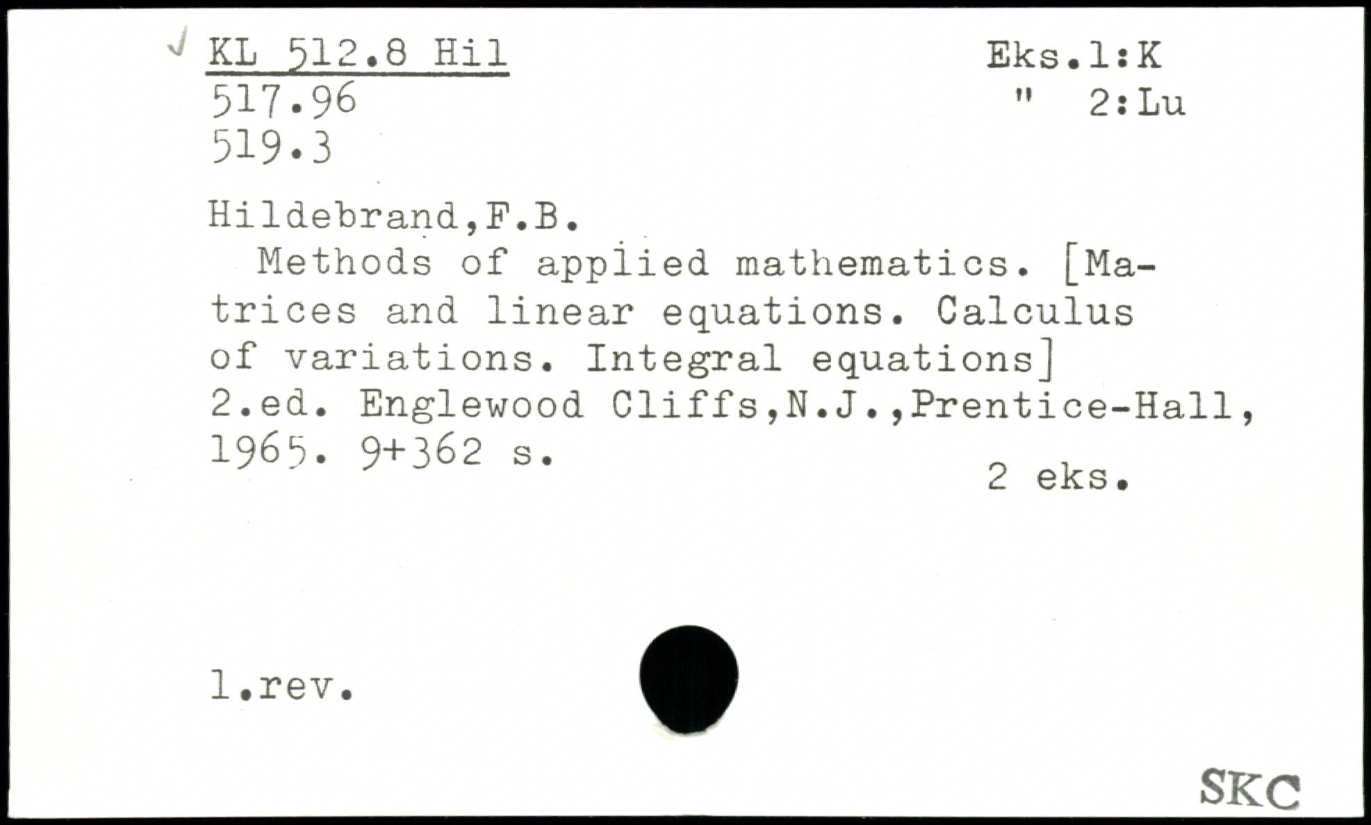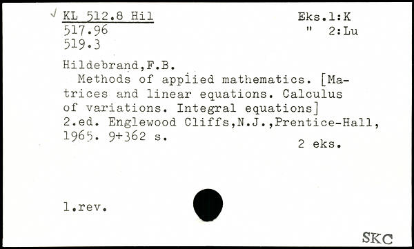 Methods of applied mathematics. [Matrices and linear equations. Calculus of variations. Integral equations]
