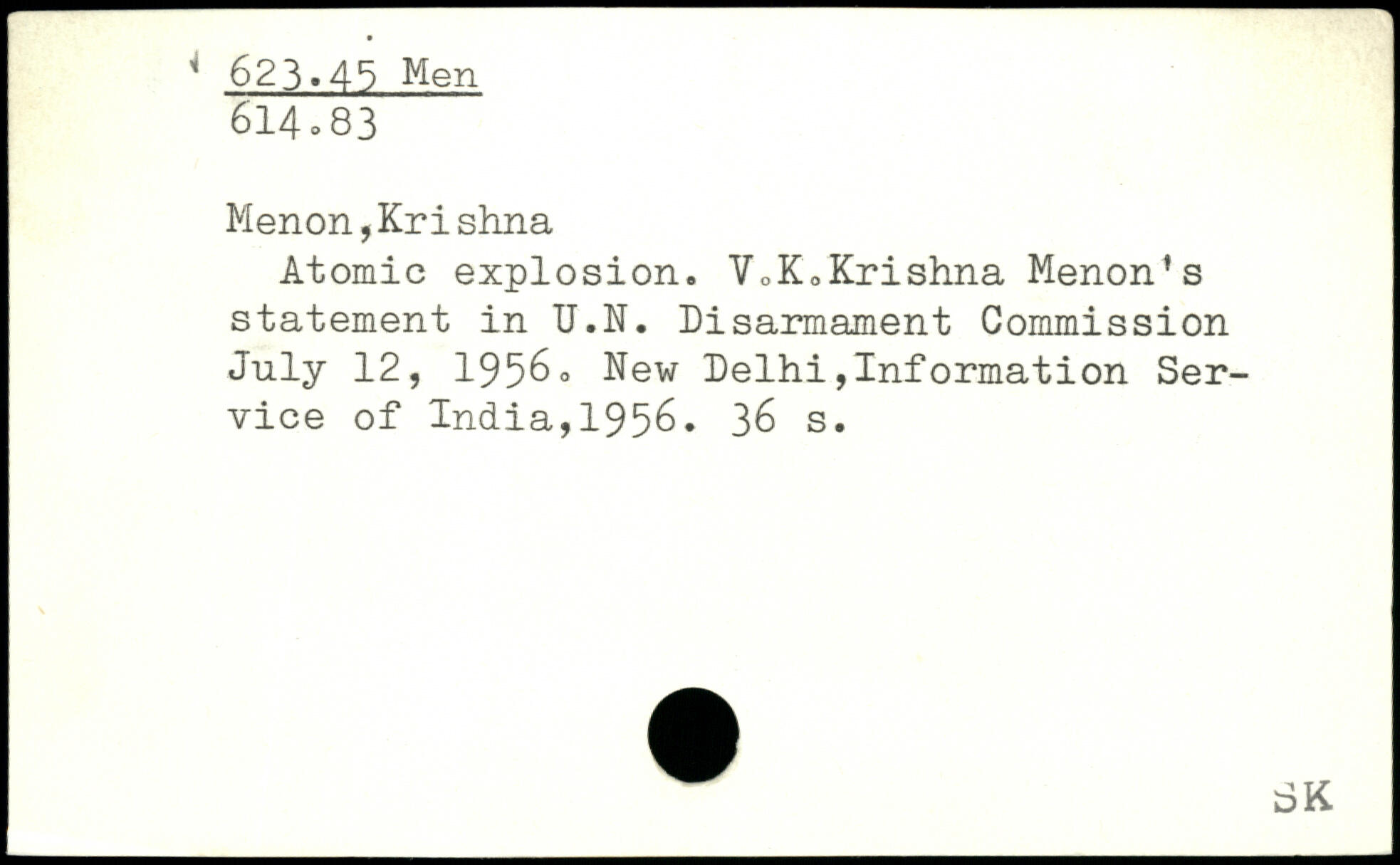 Menon,Krishna Atomic explosion. VoK0Krishna Menon’s statement in U.N. Disarmament Commission July 12, 1956o