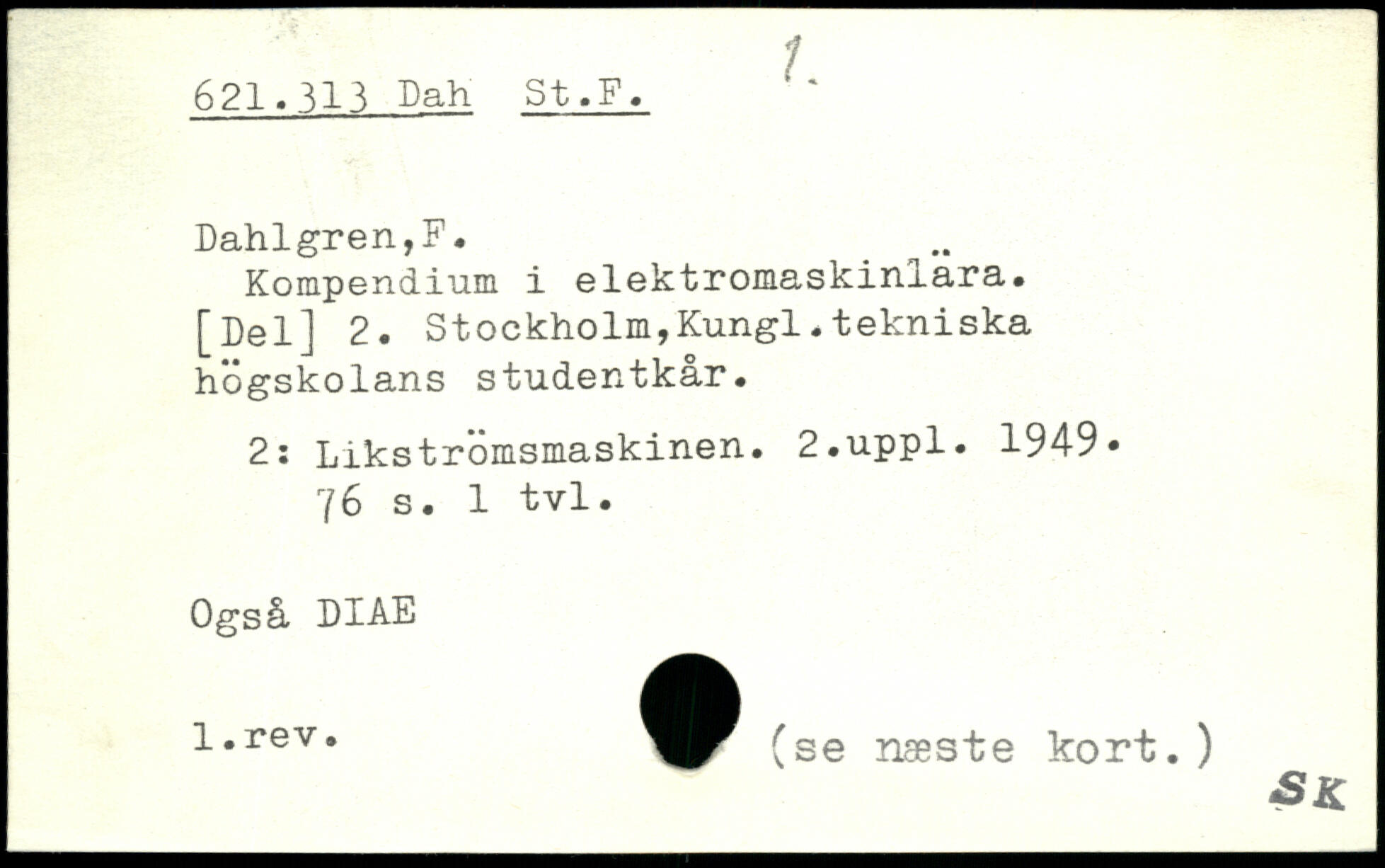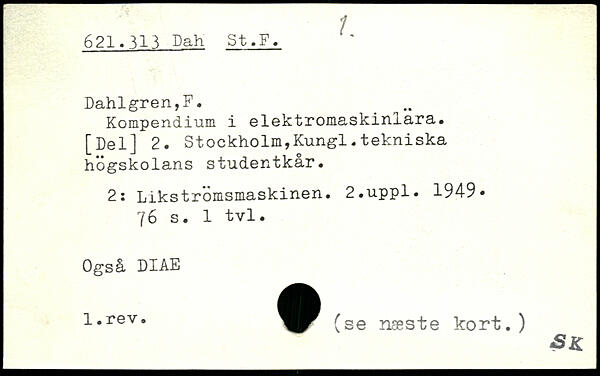 Kompendium i elektromaskinlara. [Del] 2. Stockholm,Kungl.tekniska högskolans studentkår. 2: Likstromsmaskinen.