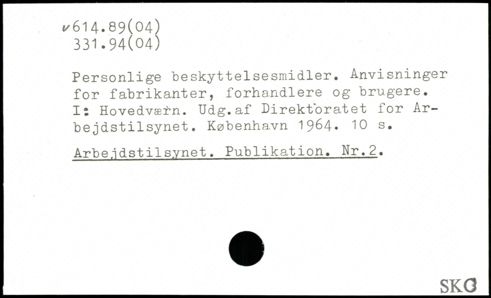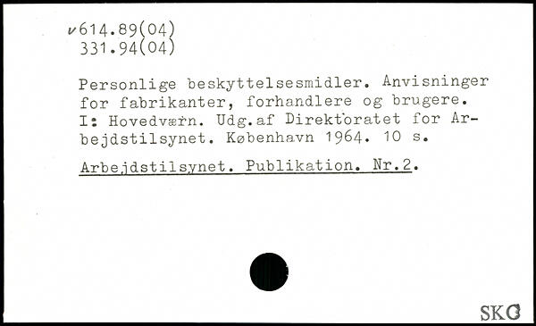 Personlige beskyttelsesmidler. Anvisninger for fabrikanter, forhandlere og brugere. I: Hovedværn. Udg.af Direktbratet for Arbejdstilsynet.