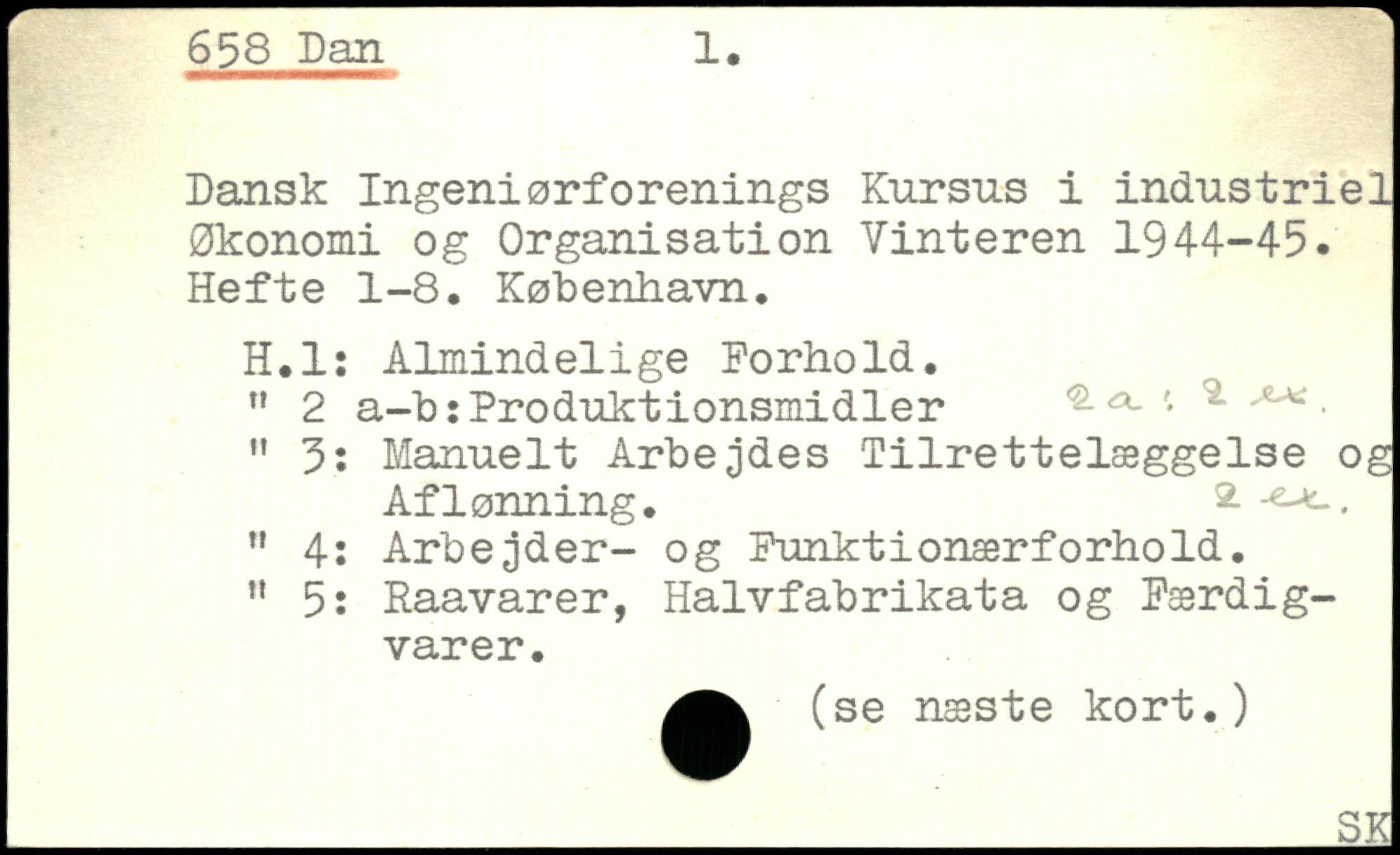Dansk Ingeniørforenings Kursus i industriel Økonomi og Organisation Vinteren 1944-45. Hefte 1-8, København. H.l: Almindelige Forhold. ” 2 a-b:Produktionsmidler ^ ^. " 3: Manuelt Arbejdes Tilrettelæggelse og Aflønning. 2- ...-. M 4: Arbejder- og Funktionærforhold. n 5: Raavarer, Halvfabrikata og Færdigvarer.