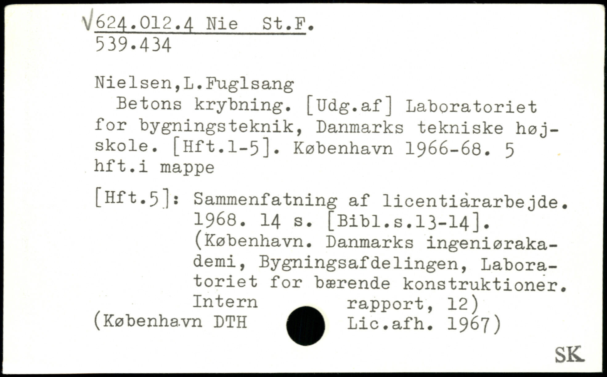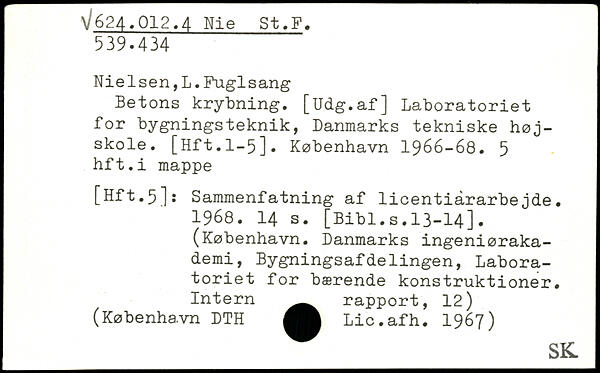 Nielsen,L.Fuglsang Betons krybning. [Udg.af] Laboratoriet for bygningsteknik, Danmarks tekniske højskole. [Hft.1-5].