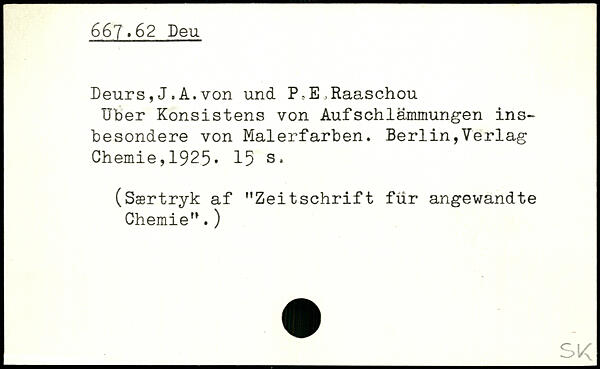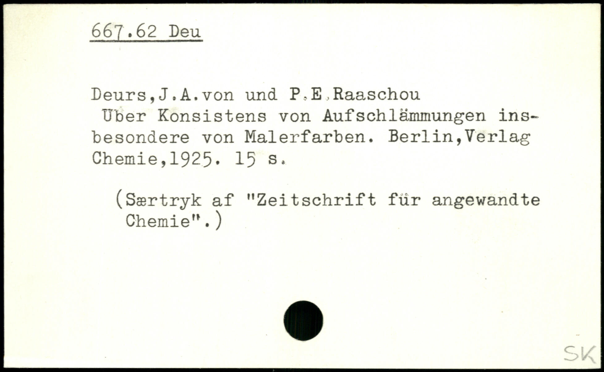 Deurs,J,A.von und PrE.Raaschou Über Konsistens von Aufschlämmungen insbesondere von Malerfarben.