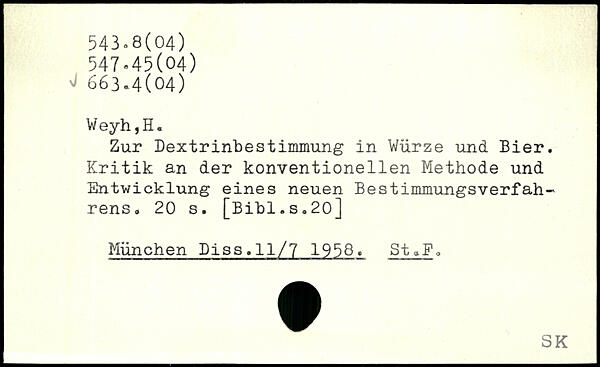 Zur Dextrinbestimmung in Würze und Bier. Kritik an der konventionellen Methode und Entwicklung eines neuen Bestimmungsverfah-renso