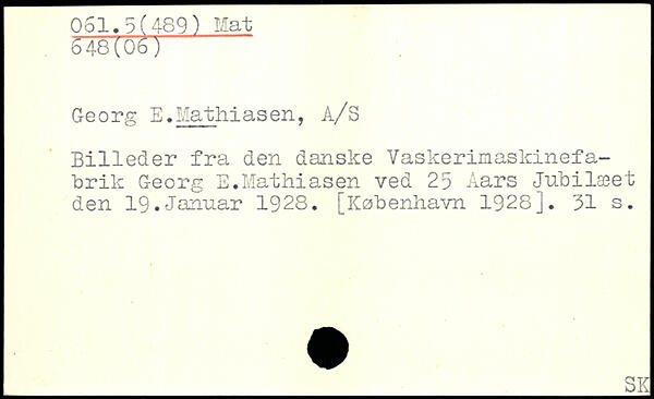 Georg E.Mathiasen, A/S Billeder fra den danske Vaskerimaskinefa-brik Georg E.Mathiasen ved 25 Åars Jubilæet den 19.Januar 1928.