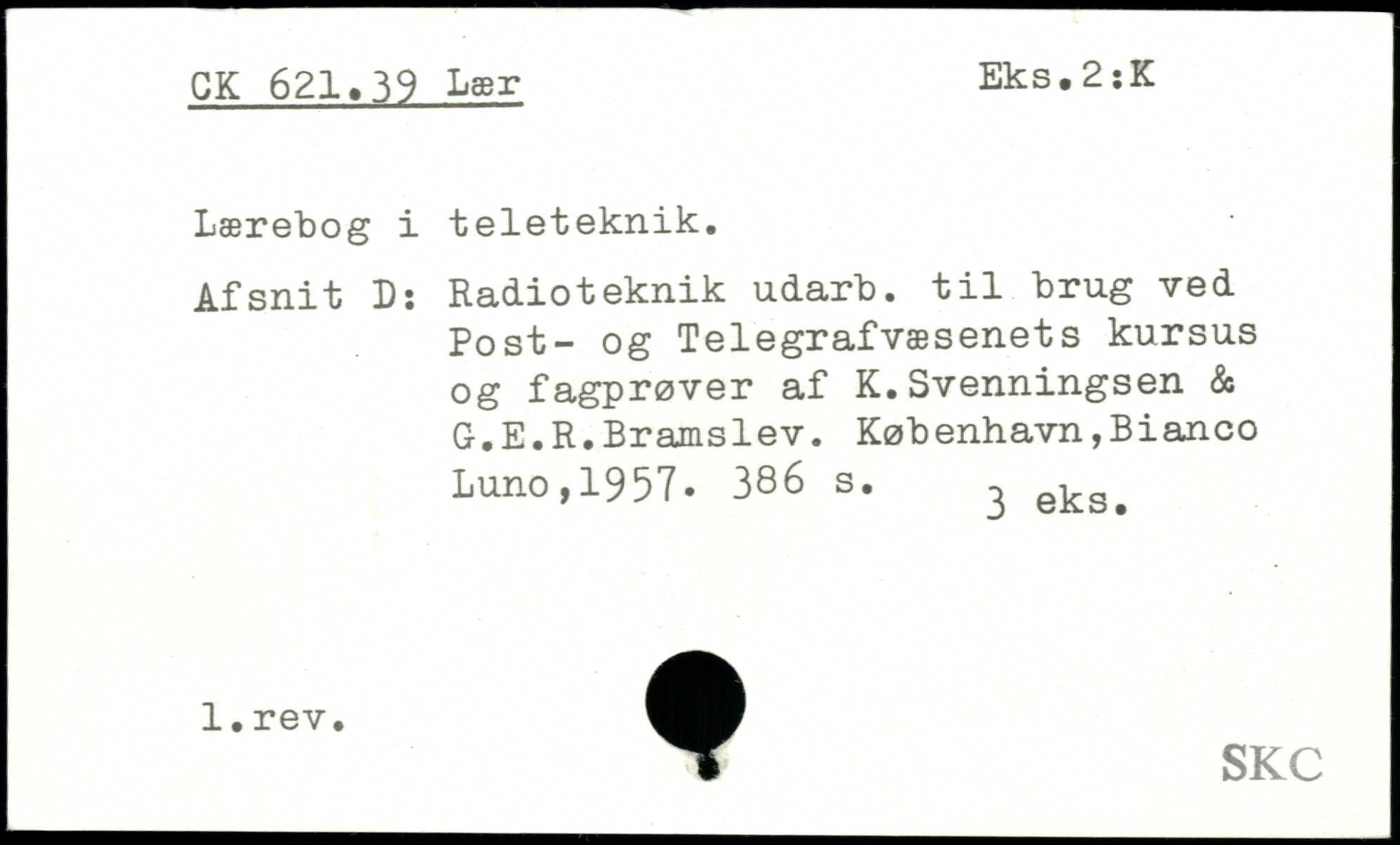 Lærebog i teleteknik. Afsnit Ds Radioteknik udarb. til brug ved Post- og Telegrafvæsenets kursus og fagprøver af K.Svenningsen & G.E.R.Bramslev.