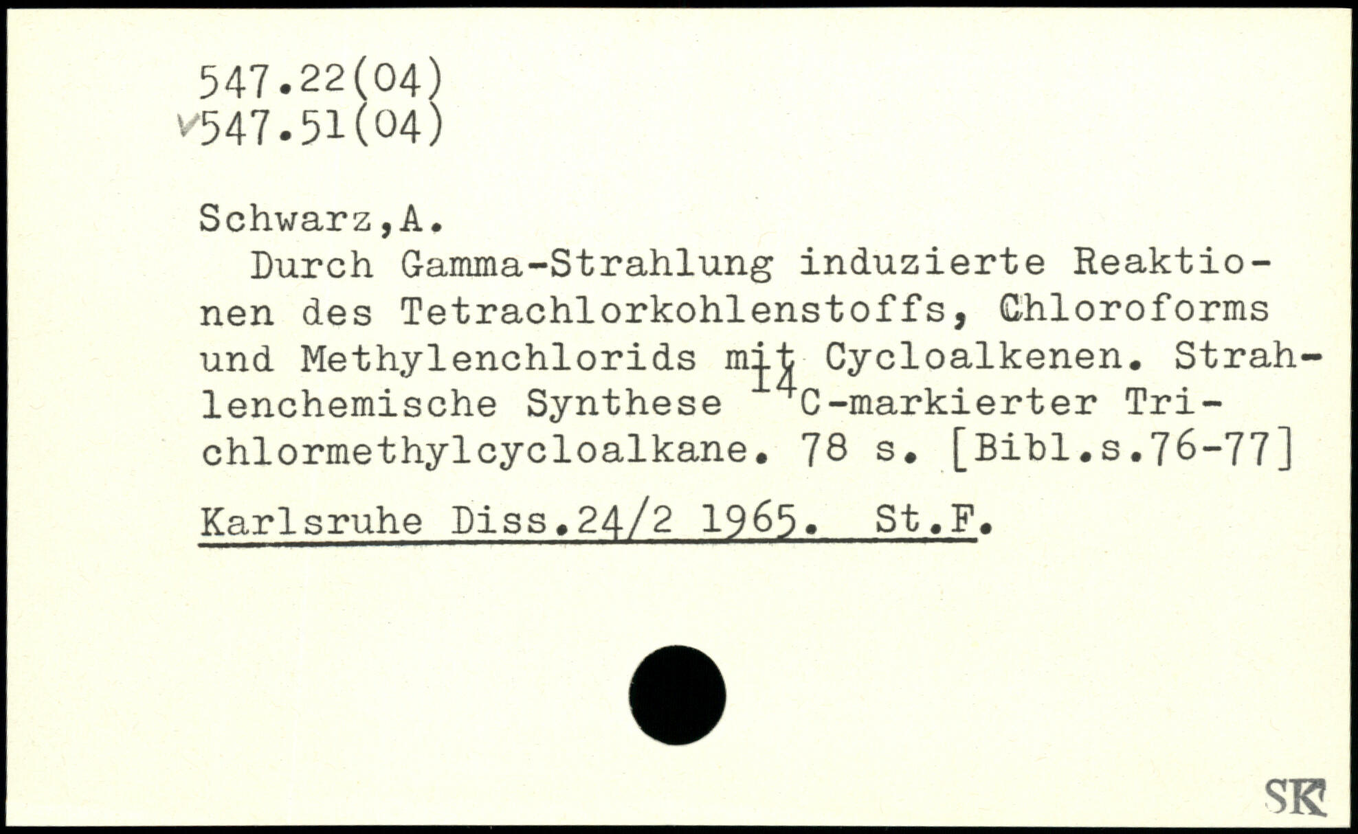 Durch Gamma-Strahlung induzierte Reaktionen des Tetrachlorkohlenstoffs, Chloroforms und Methylenchlorids mit Cycloalkenen. Strahlenchemische Synthese 4C-markierter Tri-chlormethylcycloalkane.