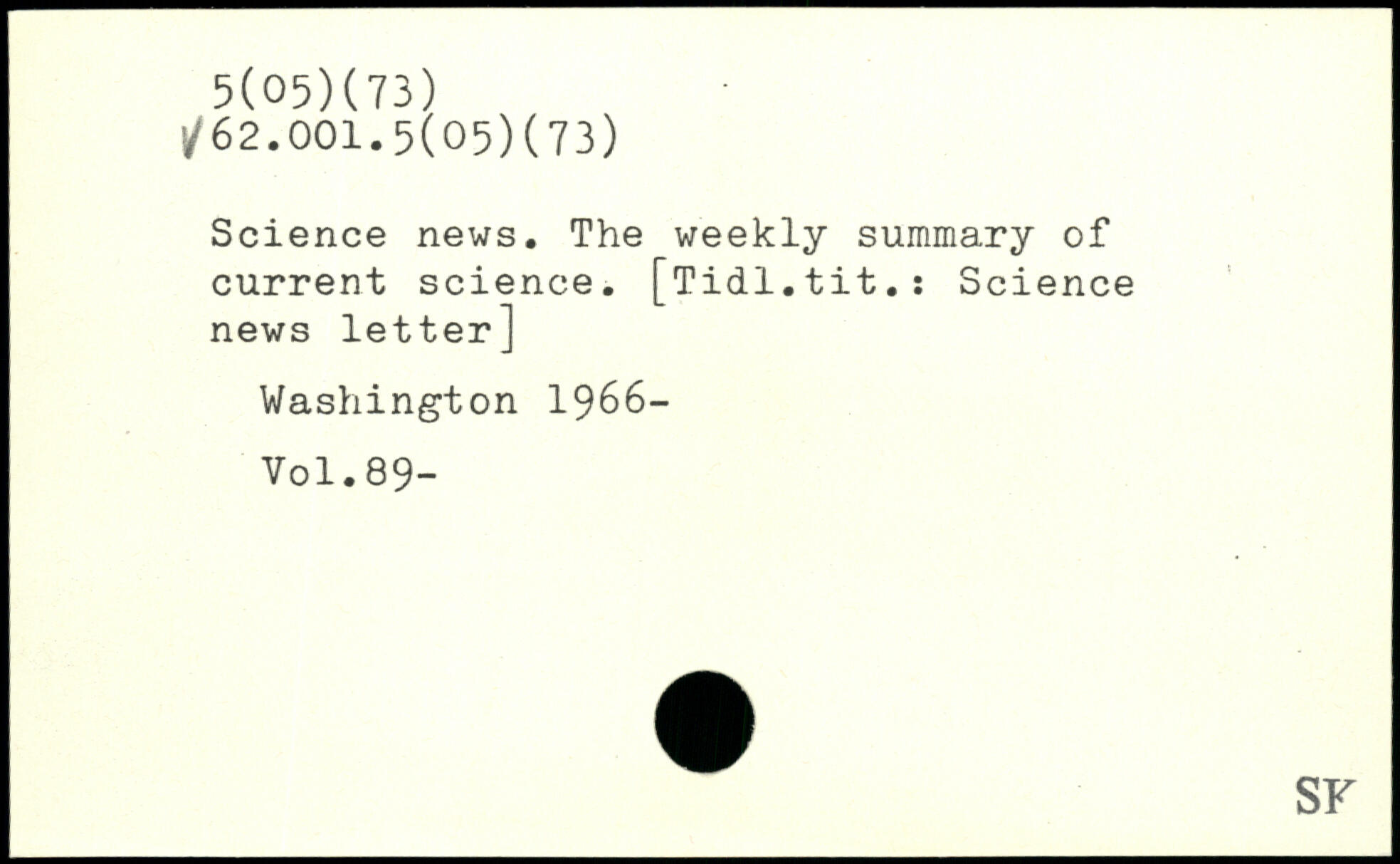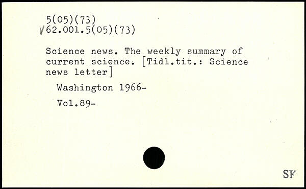 Science news. The weekly summary of current science. [Tidl.tit.: Science news letter]