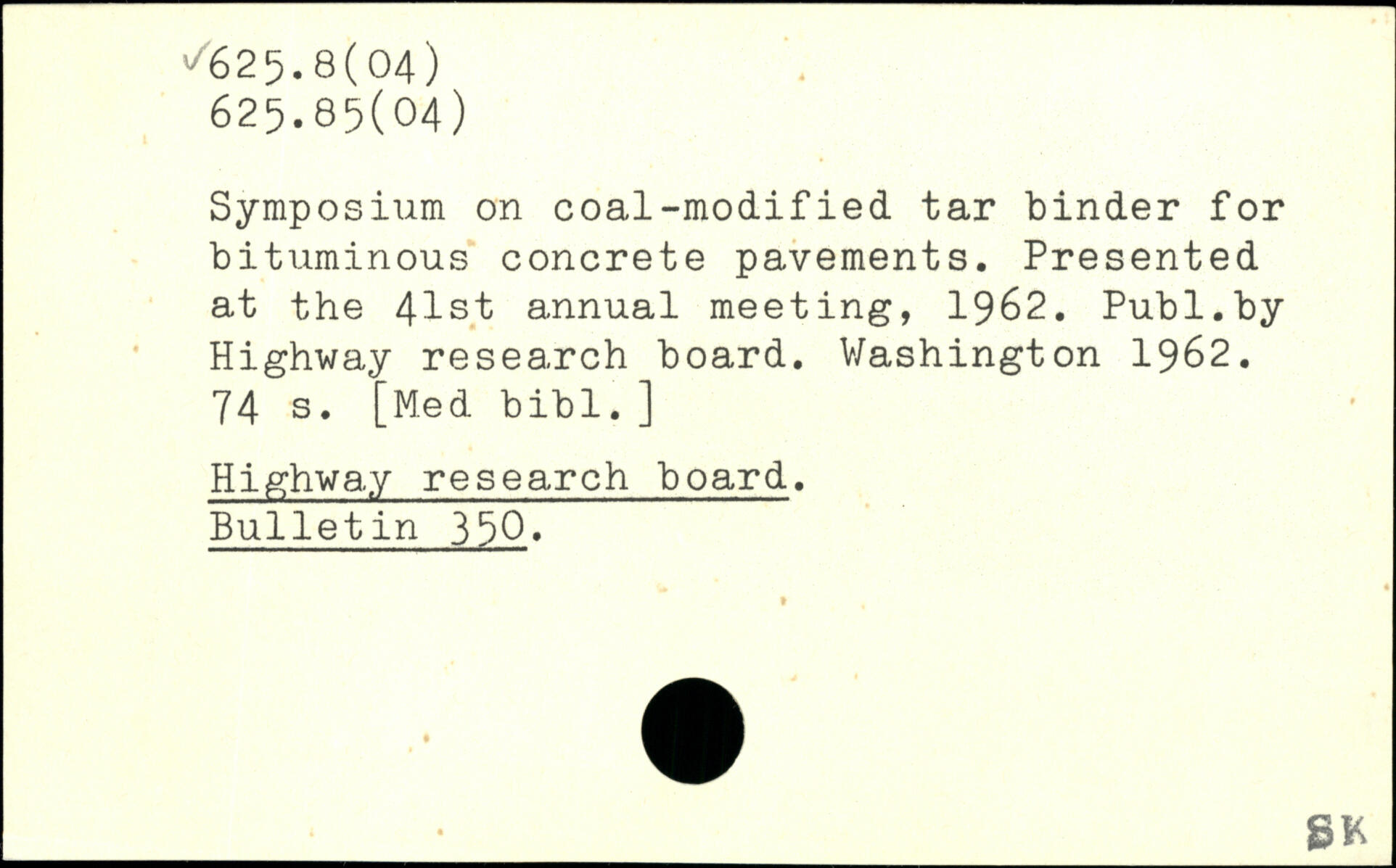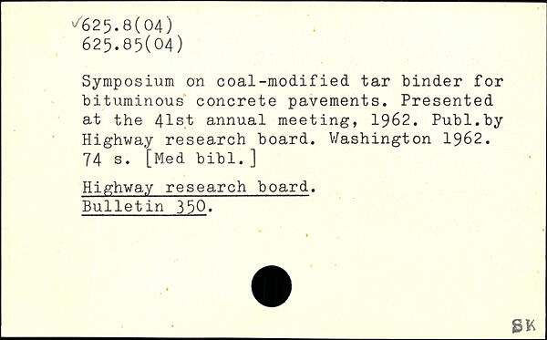 Symposium on coal-modified tar binder for bituminous concrete pavements. Presented at the 41st annual meeting, 1962.