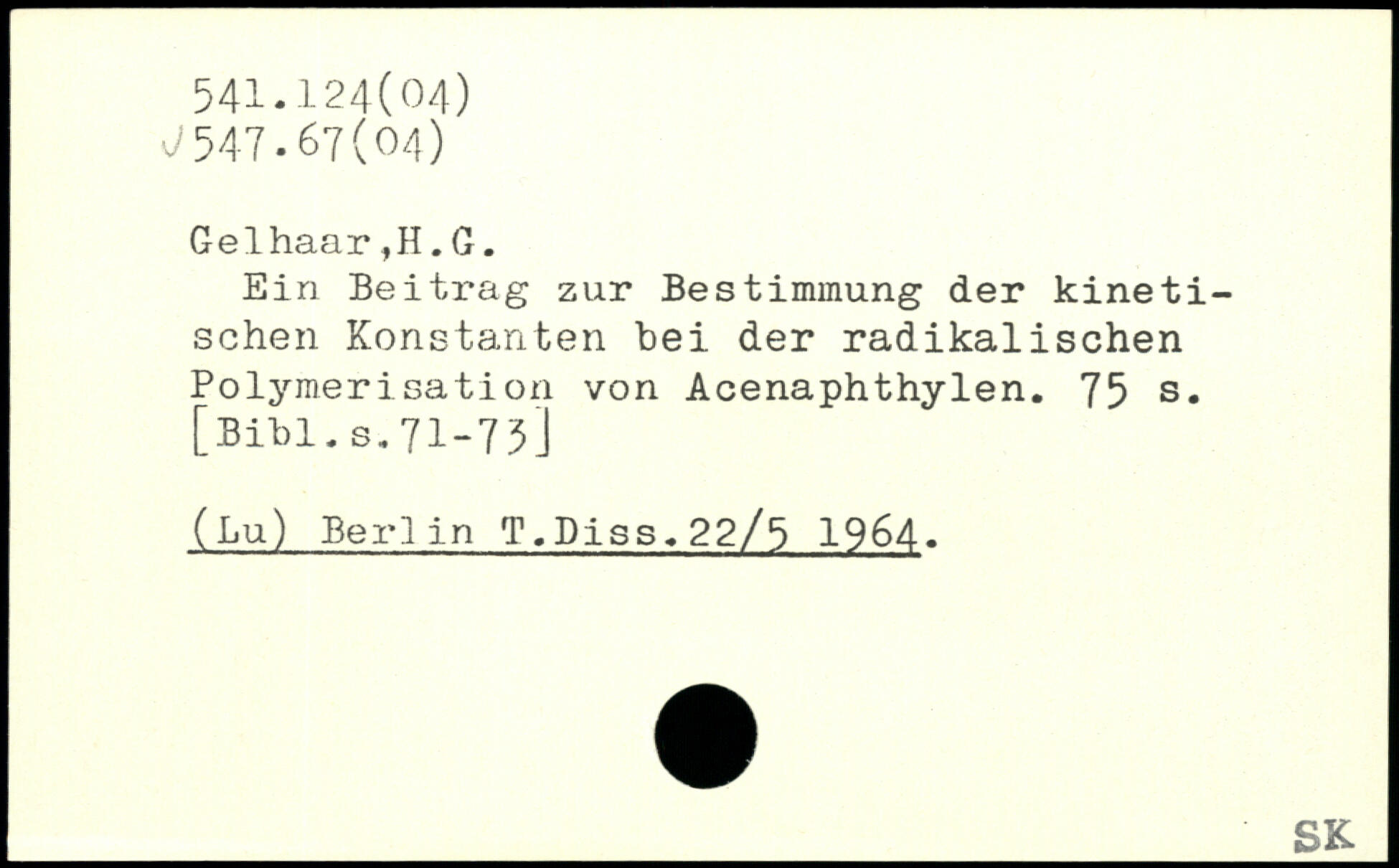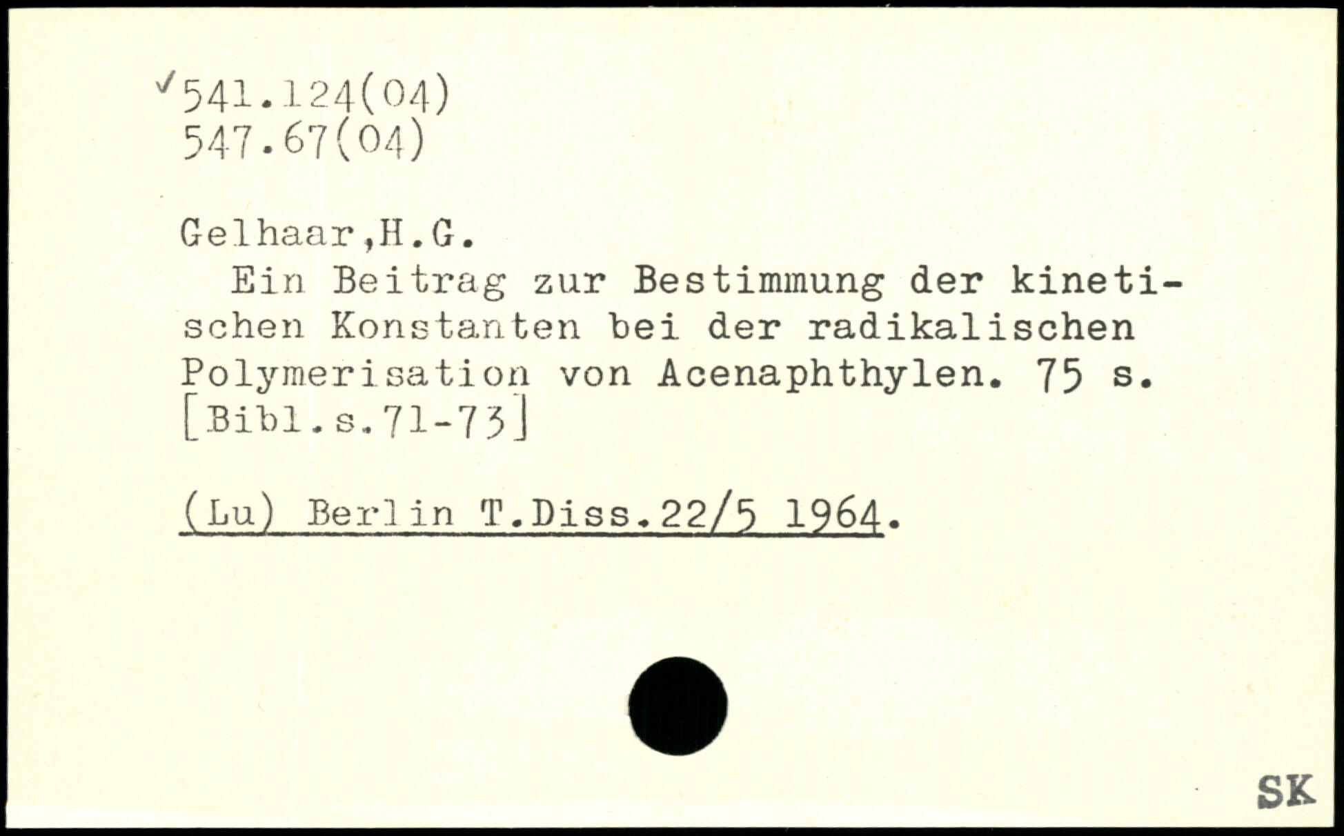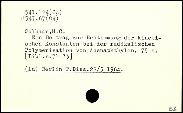 Ein Beitrag zur Bestimmung der kinetischen Konstanten bei der radikalischen Polymerisation von Acenaphthylen.