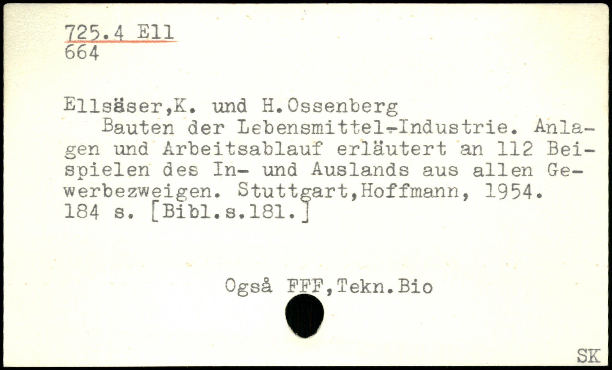 Ellsäser ,K. -und H. Ossenberg -Bauten der Lebensmittelindustrie. Anlagen und Arbeitsablauf erläutert an 112 Beispielen des In- und Auslands aus allen Gewerbezweigen.