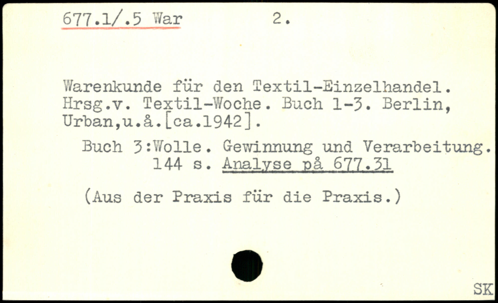 Warenkunde für den Textil-Sinzelhandel. Hrsg.v. Textil-Woche. Buch. 1-3. Berlin, Urban,u.ä.[ca.1942]. Buch 3:Wolle. Gewinnung und Verarbeitung.
