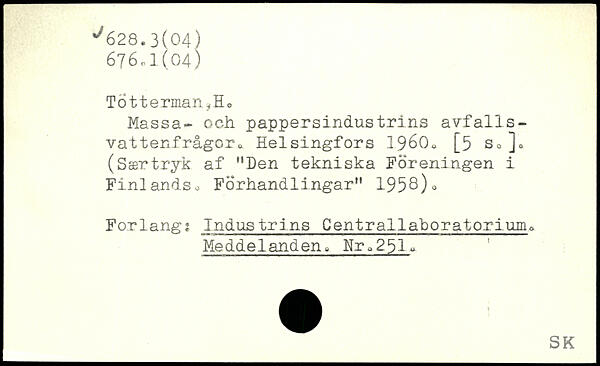 Massa- och pappersindustrins avfalls-vattenfrågor.