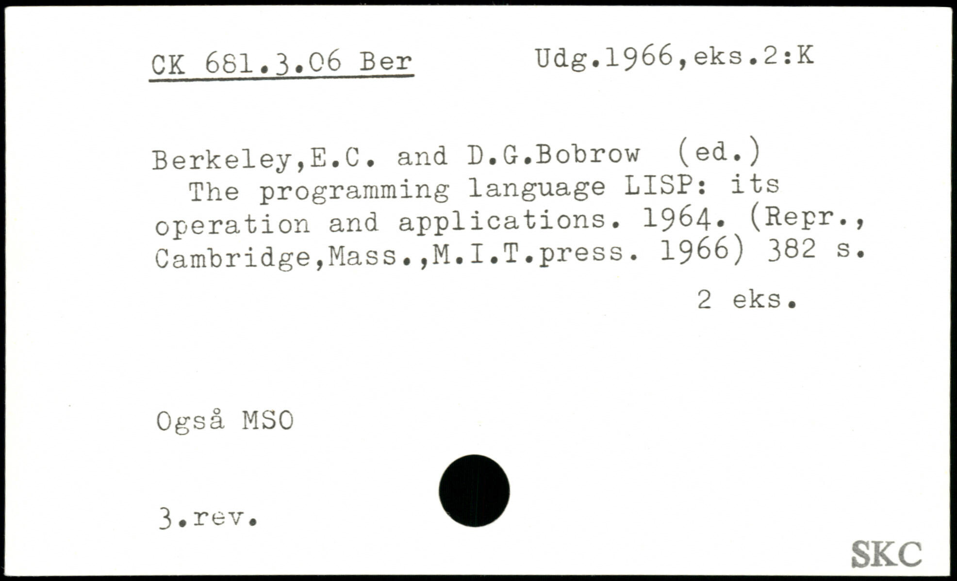 The programming language LISP: its operation and applications. 1964, (Repr., Cambridge,Mass.,M.I.T.press. 1966)