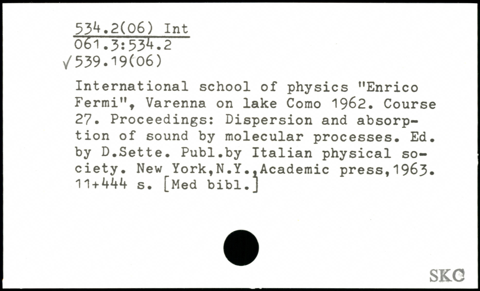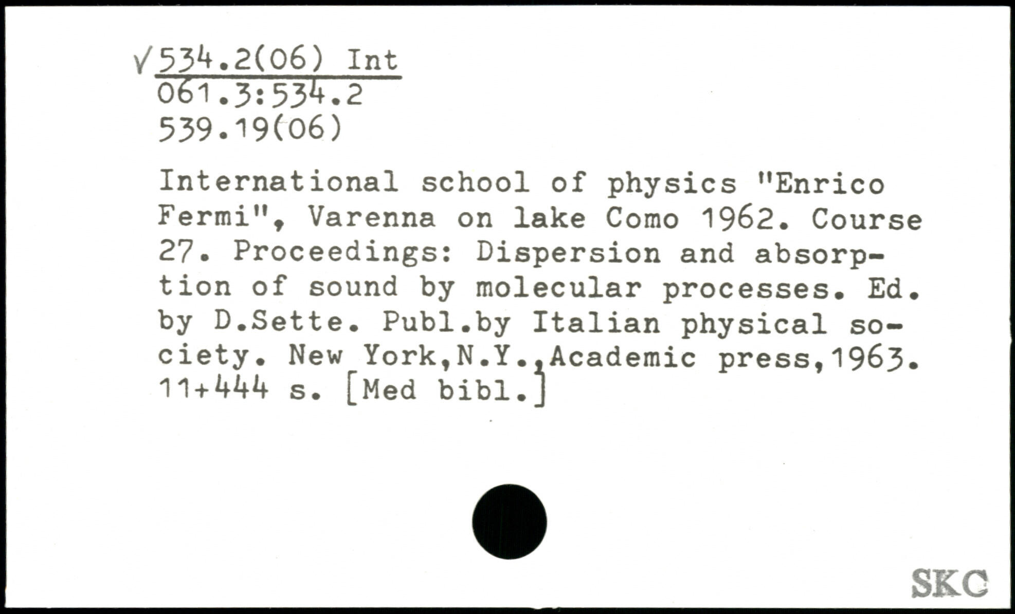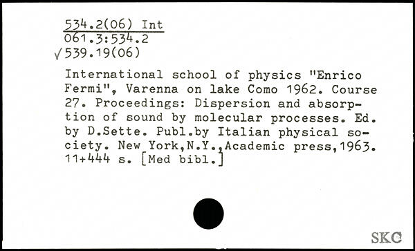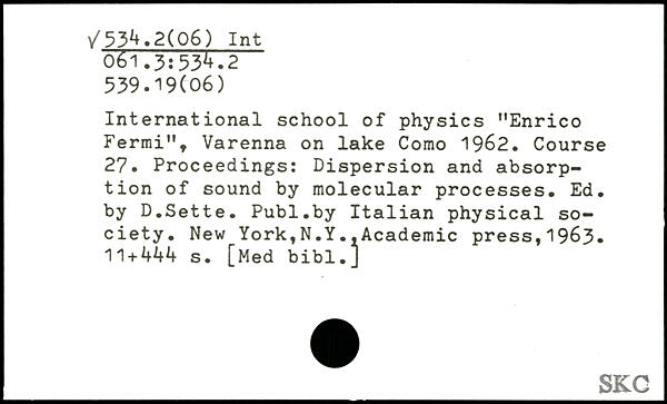 International school of physics "Enrico Fermi", Varenna on lake Como 1962. Course 27. Proceedings: Dispersion and absorption of sound by molecular processes. Ed. by D.Sette.