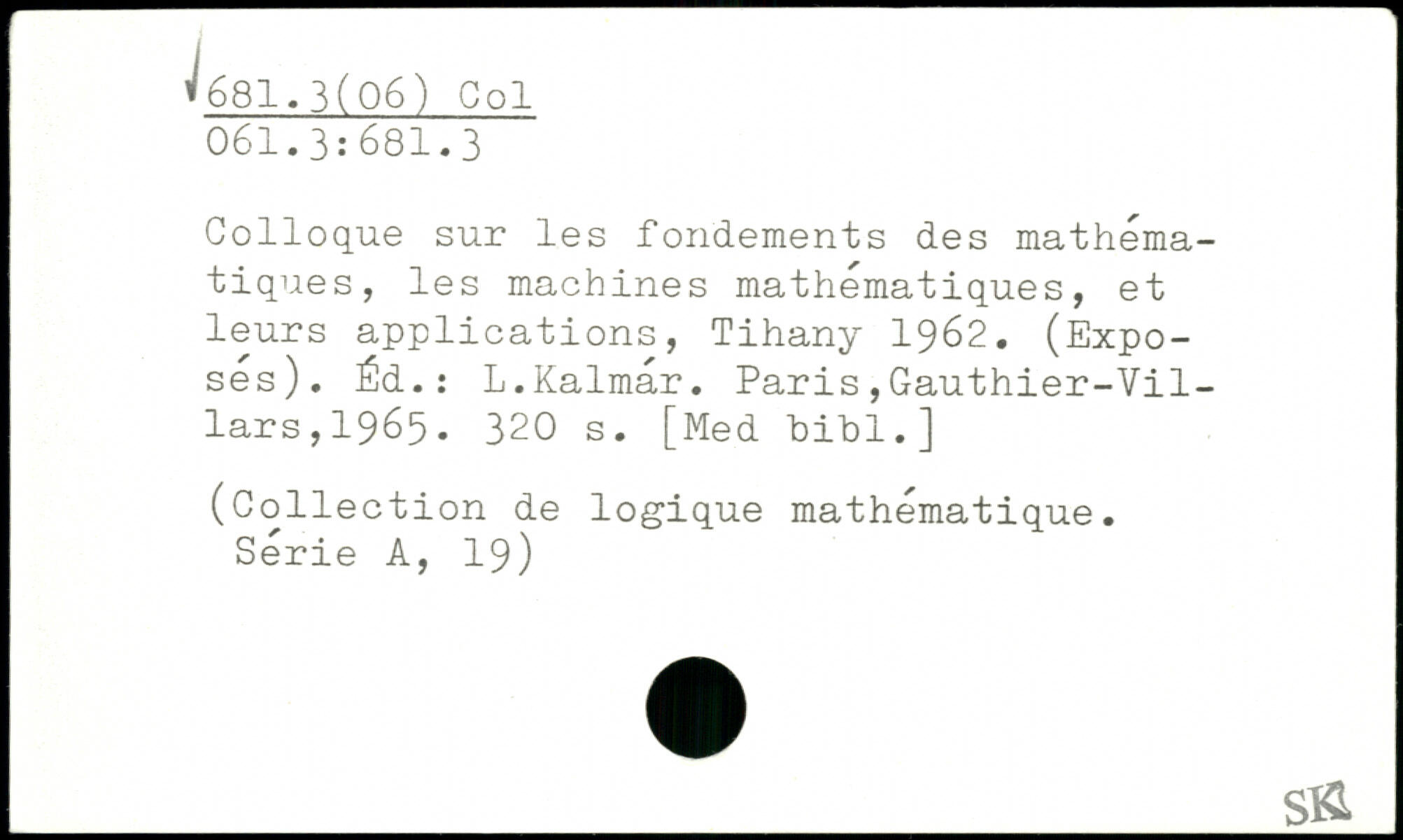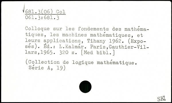 Colloque sur les fondements des mathématiques, les machines mathématiques, et leurs applications, Tihany 1962. (Exposés). Éd.: L.Kalmar.
