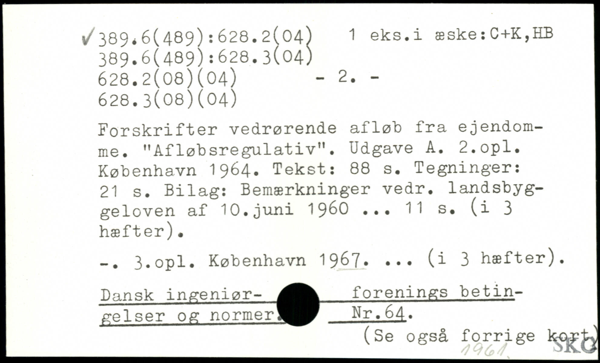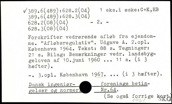 Forskrifter vedrørende afløb fra ejendomme. "Afløbsregulativ". Udgave A. 2.opl.