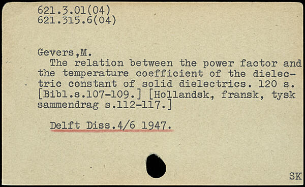The relation between the power factor and the temperature coefficient of the dielec-. trie constant of solid dielectrics.