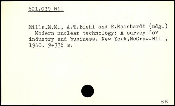 Mills,M.M., A.T.Biehl and R.Mainhardt (udgo) Modern nuclear technology: A survey for industry and "business.
