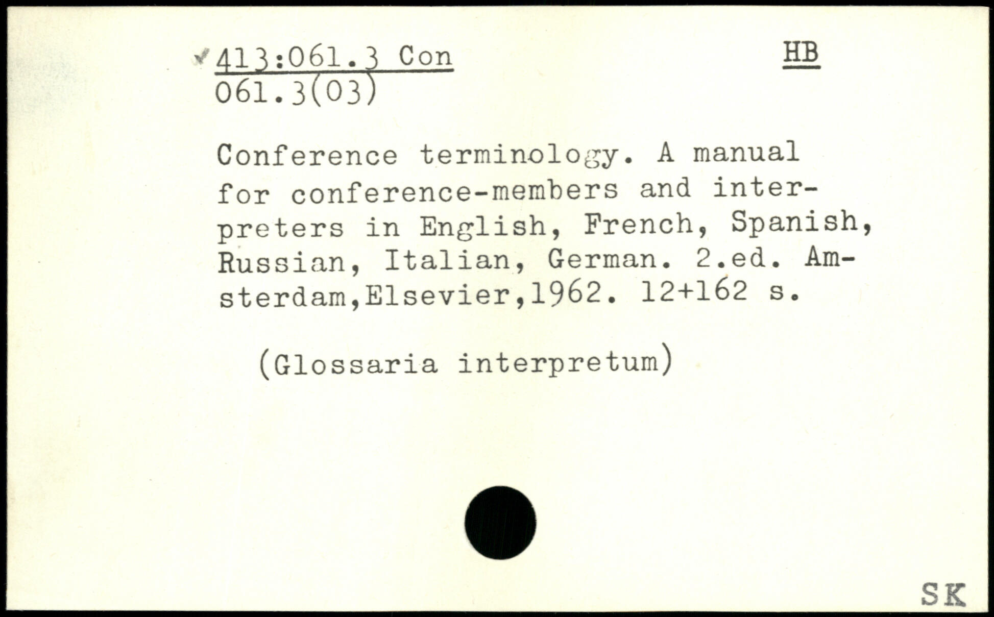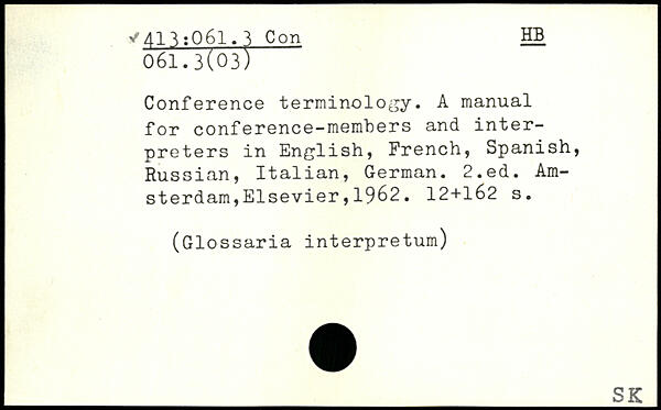Conference terminology. A manual for conference-members and interpreters in English, French, Spanish, Russian, Italian, German.