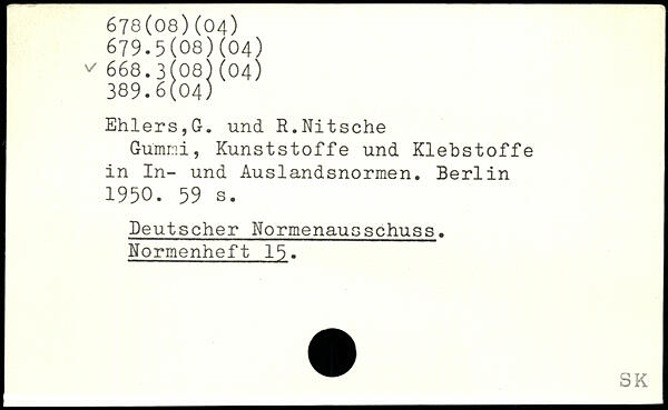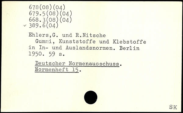 Gummi, Kunststoffe und Klebstoffe in In- und Auslandsnormen.