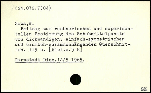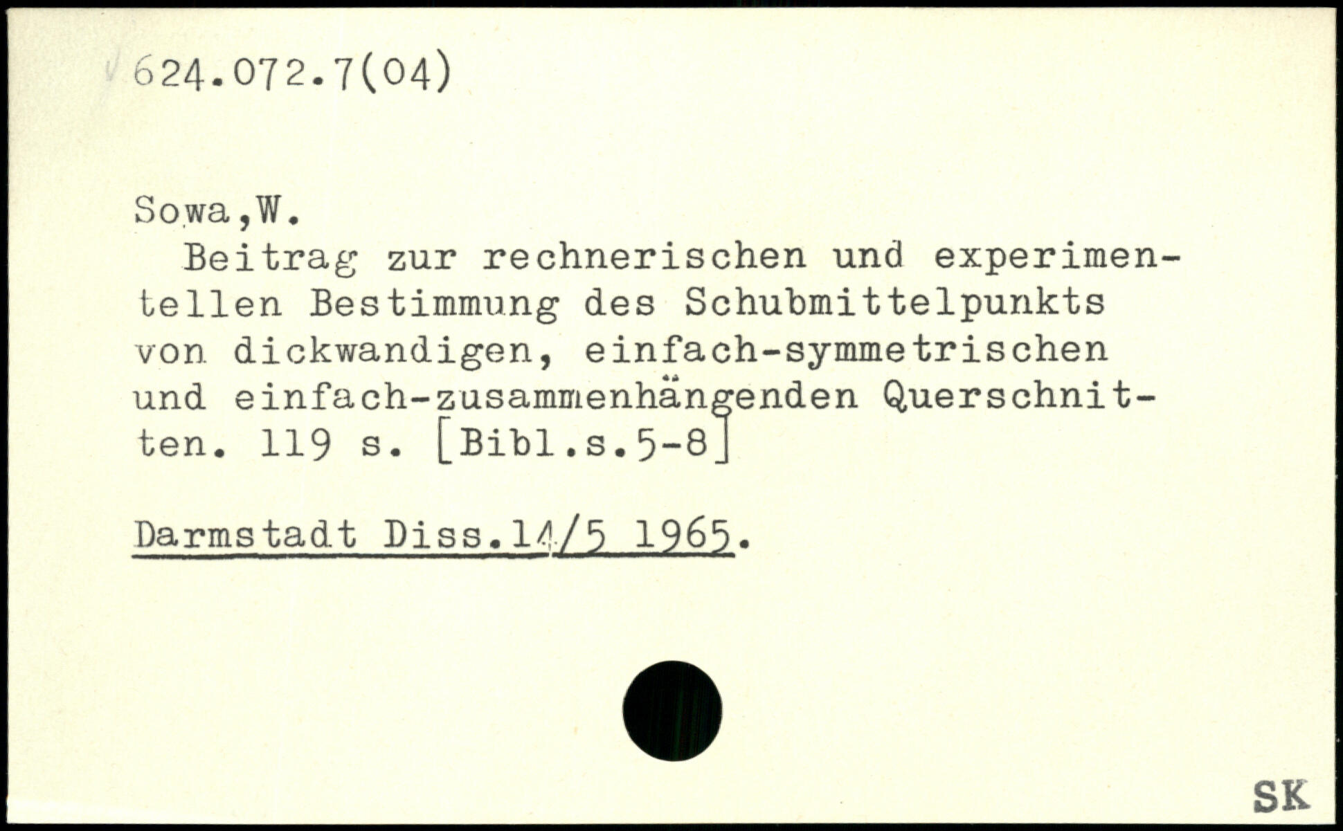 So.wa ,W. Beitrag zur rechnerischen und experimentellen Bestimmung des Schubmittelpunkts von dickwandigen, einfach-symmetrischen und einfach-zusammenhängenden Querschnitten.