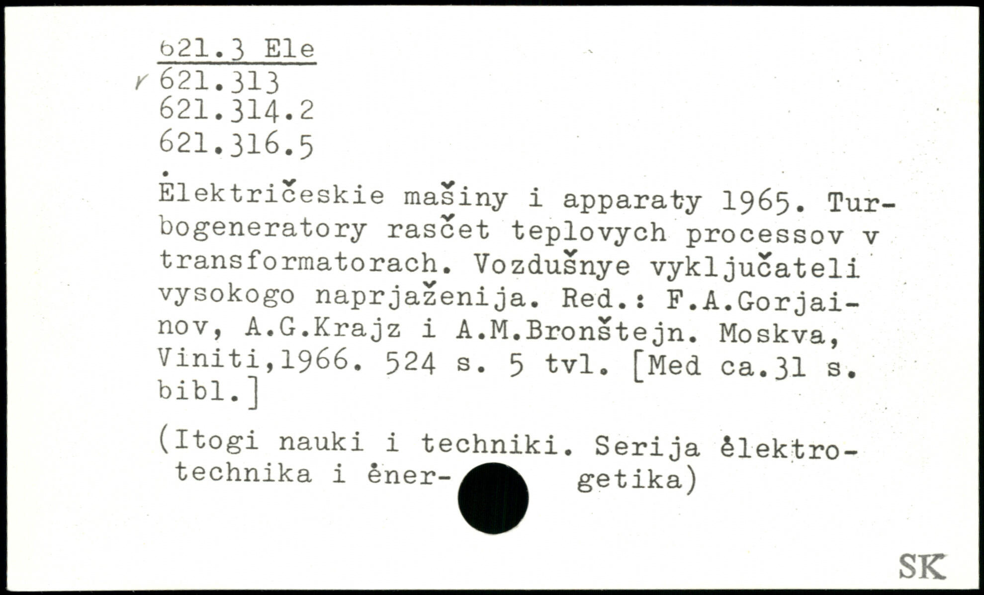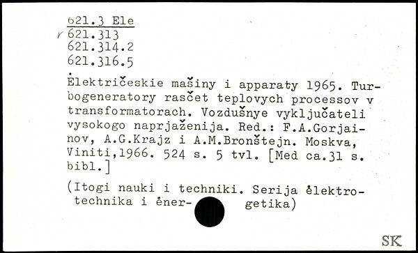 Êlektriceskie masiny i apparaty 1965. Tur-bogeneratory rascet teplovych processov v transformatorach. Vozdusnye vykljucateli vysokogo naprjazenija. Red.: F.A.Gorjai-nov, A.G.Krajz i A.M.Bronstejn.