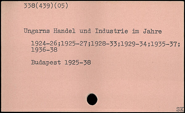 Ungarns Handel und Industrie im Jahre 1924-26;1925-27 >1928-33;1929-34;1935-37; 1936-38