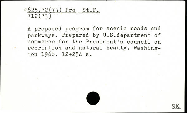 A proposed program for scenic roads and parkways. Prepared by U.S.department of commerce for the President's council on. recrea+ion and natural beauty. Washing. ton 1966.