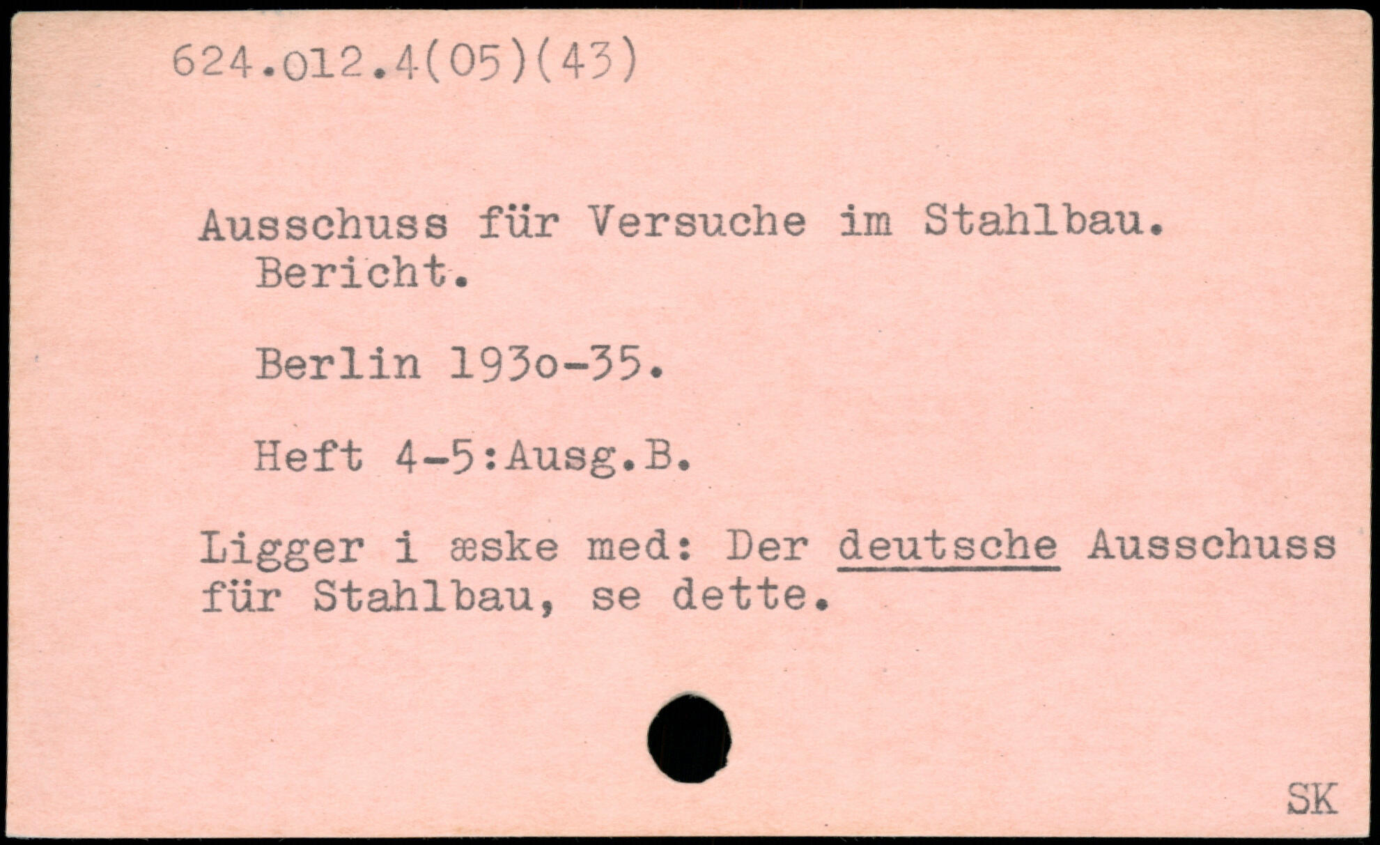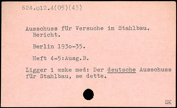 Ausschuss für Versuche im Stahlbau. Bericht. Berlin 193o-35. Heft 4-5:Ausg.B. Ligger i æske med: Der deutsche Ausschuss für Stahlbau, se dette.