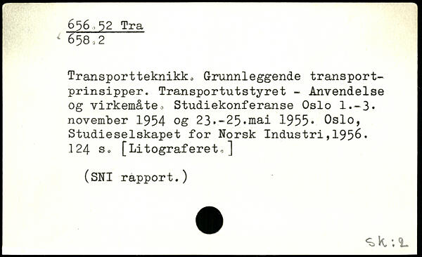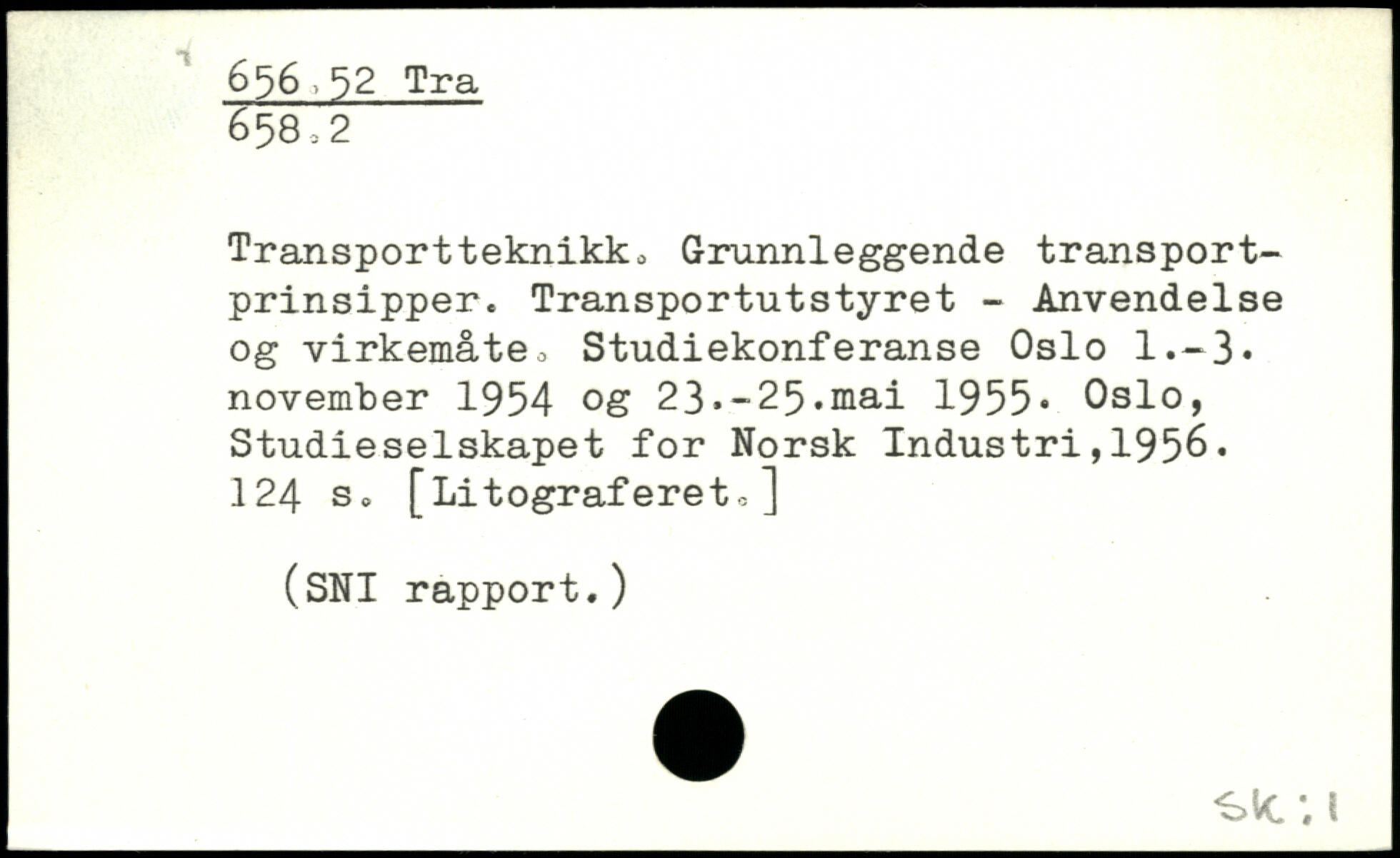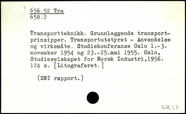 Transportteknikko Grunnleggende transport-prinsipper. Transportutstyret - Anvendelse og virkemåte, Studiekonferanse Oslo 1.-3, november 1954 og 23.-25.mai 1955.