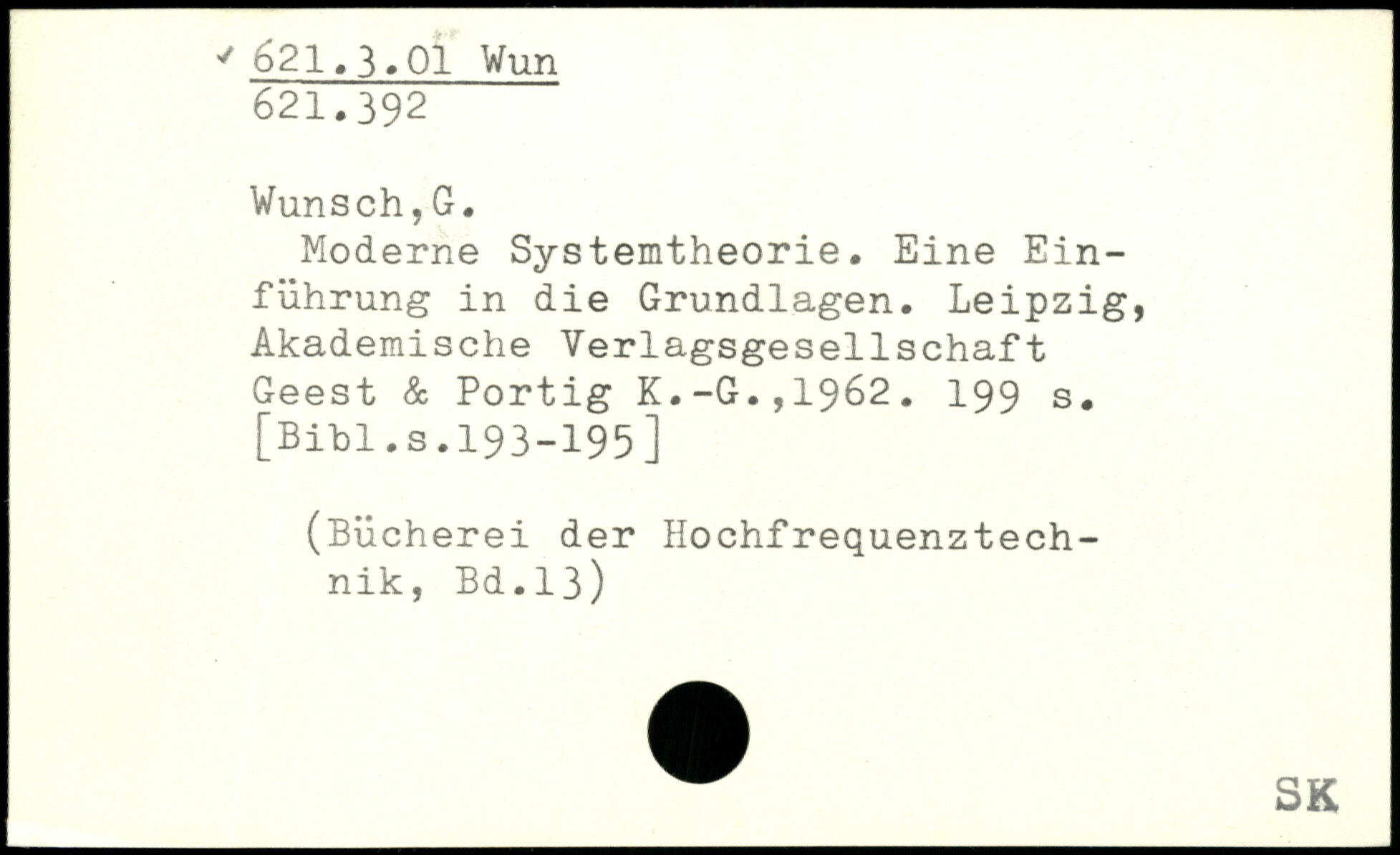Moderne Systemtheorie. Eine Einführung in die Grundlagen. Leipzig, Akademische Verlagsgesellschaft Geest & Portig K.-G.,1962.