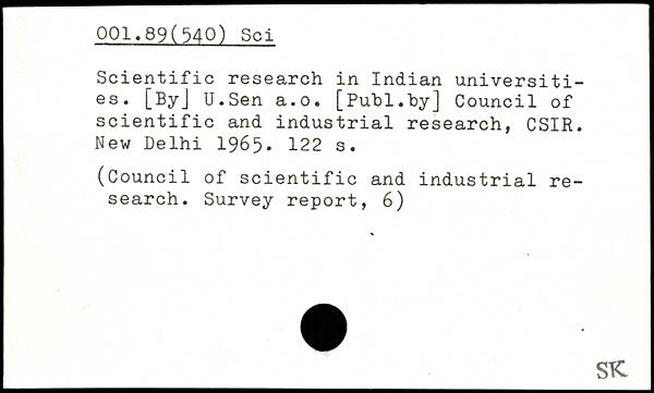 Scientific research in Indian universities. [ByJ U.Sen a.o.